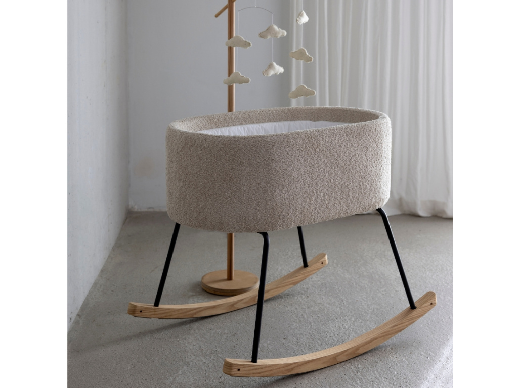 Houpací kolébka Quax De Luxe pomůže zavést vaše děťátko do klidné říše snů. Je čalouněná měkkou bouclé tkaninou, pohodlnou a příjemnou na dotek. Minimalistický design kolébkového hnízdečka je doplněn kovovou podnoží a dřevěnými ližinami z březového masivu. Ty jsou na spodní straně opatřeny plstěným materiálem, který ochrání podlahu před poškrábáním a usnadní hladký pohyb. Díky odnímatelnému vnitřnímu povlaku se nemusíte bát o zdraví vašeho miminka, stačí ho vyprat a znovu použít. Vytvořte vašemu drobečkovi bezpečné a klidné útočiště s kolébkou De Luxe v nadčasovém designu. Součástí balení jsou také čtyři kovové zarážky, které využijete, když nebudete chtít, aby se kolébka hýbala.