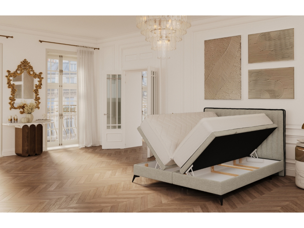 Představujeme vám ideální nadčasový prvek do vašeho interiéru – čalouněnou dvoulůžkovou postel ADRON. Tento model zaujme na první pohled svým elegantním designem, který kombinuje vertikální prošívání s jemnými černými detaily na čele postele. Žinylková tkanina je nejen krásná, ale také neuvěřitelně příjemná na dotek a vysoce odolná proti oděru, což zaručuje dlouhou životnost. Díky praktickému úložnému prostoru s bočním otevíráním máte možnost využít místo pro uložení sezónních věcí či ložního prádla. Protiskluzová úprava základní matrace zajistí, že svrchní matrace zůstane vždy na svém místě.