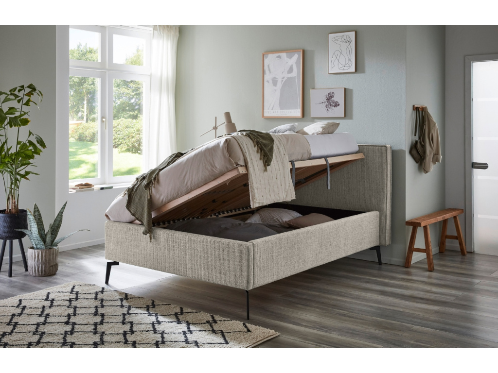 ProhlédnoutBéžová čalouněná dvoulůžková postel Meise Möbel Riva 140 x 200 cm s úložným prostorem