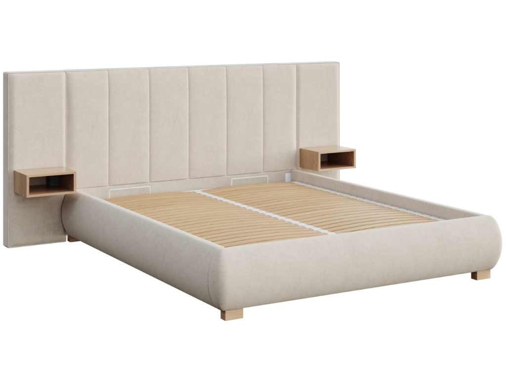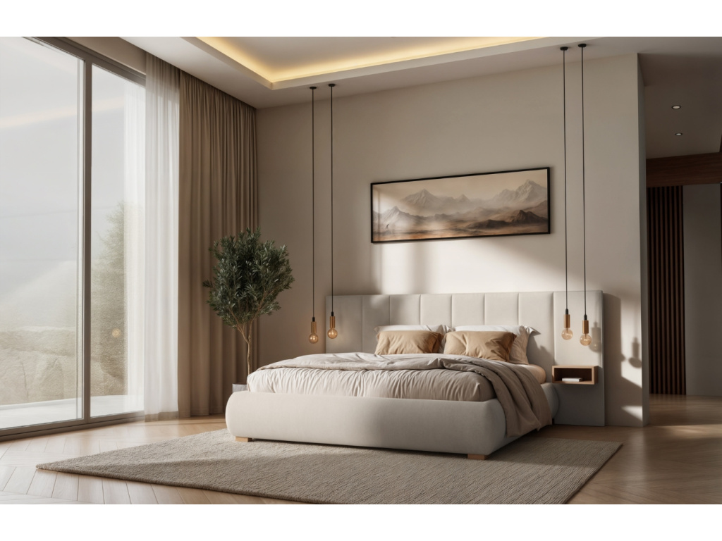 Postel Fioro od značky Mesonica je elegantní poctou modernímu minimalismu – vyniká svou nadčasovou siluetou, měkkými liniemi a sofistikovanými detaily, které z ní dělají víc než jen místo pro spánek. Velkorysé čelo s prošíváním a rozšířenými boky nepůsobí jen útulně – skrývá integrované noční stolky, takže nemusíte řešit, kam s knížkou, sklenicí vody nebo telefonem. Vše, co potřebujete před usnutím, budete mít doslova na dosah ruky. Nechybí ani prostorný úložný prostor pod výklopným roštem, který nabízí skvělé řešení pro uložení lůžkovin, sezónního textilu nebo čehokoli, co potřebujete mít po ruce, ale ne na očích. Jednoduchý a spolehlivý pneumatický mechanismus zajistí snadné a pohodlné otevírání. Fioro není jen postel – je to promyšlený prostor pro odpočinek, eleganci a každodenní radost z domova.