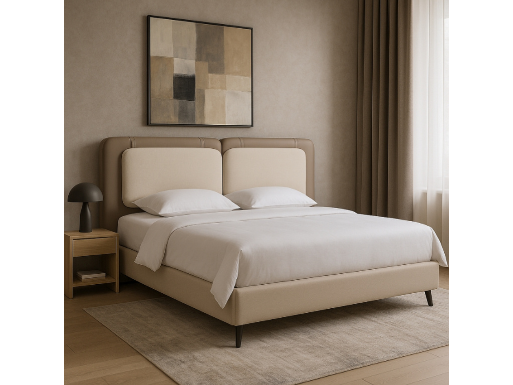 Postel Accera od značky Miotto představuje dokonalou kombinaci moderní elegance a funkčního designu, která promění vaši ložnici v harmonické útočiště. Dominantním prvkem postele je čalouněné čelo, které kombinuje béžovou ekokůži s jemnou bílou látkou. Tato kombinace materiálů vytváří vizuální rovnováhu a přináší do interiéru pocit klidu a sofistikovanosti. Korpus postele je potažen béžovou látkou, která ladí s celkovým designem a dodává posteli jednotný vzhled. Díky svému nadčasovému designu se postel Accera snadno začlení do různých stylů interiérů. Je ideální volbou pro ty, kteří hledají spojení komfortu, kvality a estetického vzhledu.