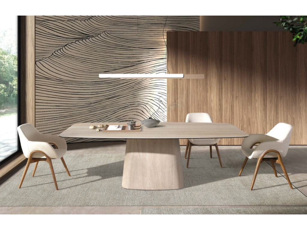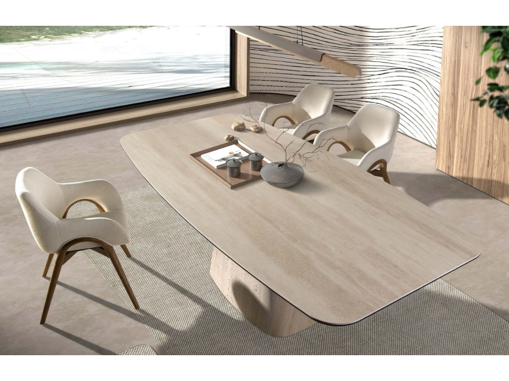Na moderní jídelní židli Angel Cerdá vás zaujmou její čisté linie, organicky tvarované područky a čalounění v neutrálním odstínu. Elegantně tvarovaná podnož v ořechovém dekoru jí dodává hřejivý přírodní akcent, který v kombinaci s látkovým čalouněním vytváří útulnou atmosféru. Sedák i opěradlo jsou vyplněny kvalitní polyuretanovou pěnou o hustotě 25 kg/m³, která se postará o příjemné sezení i při delším stolování. Díky svému nadčasovému provedení a důrazu na ergonomii je tato židle skvělou volbou nejen do jídelny, ale klidně i k psacímu stolu. Pokud hledáte židli, která bude nejen krásná, ale i funkční, tento model si zaručeně najde své místo u vašeho stolu!