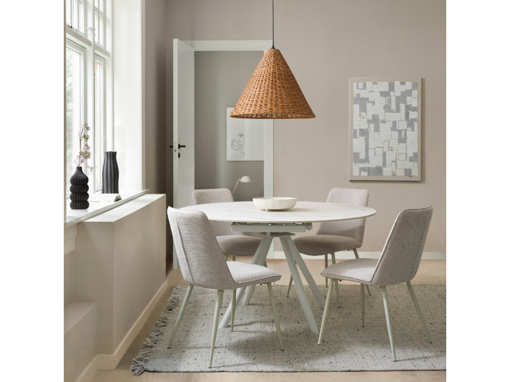 Židle Cora přinese do vaší jídelny jemnost a klid. Její čisté tvary působí lehce, zároveň ale překvapí pohodlným polstrováním a ergonomickým sezením. Béžová látka s jemnou strukturou navodí hřejivou atmosféru, která se skvěle hodí ke stylu soft scandi, retro s nádechem elegance nebo k přírodnímu dřevu. Kovová podnož působí subtilně, ale zajistí skvělou stabilitu. Cora bude ideální tam, kde hledáte nevtíravý design, který umí v prostoru vyniknout v tichosti.