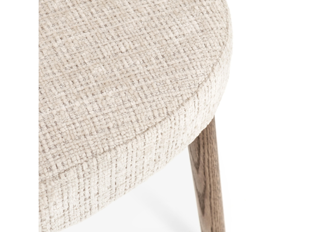 Židle Ilma zaujme hned na první pohled svým neotřelým oblým opěrákem, který působí jako elegantní objetí. Díky měkkému čalounění a podnoži z masivního dřeva v teplém dubovém tónu se skvěle hodí do interiéru ve stylu rustikální elegance. Je ideální jako jídelní židle, ale skvěle poslouží i v ložnici ke kosmetickému stolku nebo jako doplňkové sezení v předsíni. Její přirozený výraz přinese do prostoru pocit domova, bez nutnosti jakéhokoliv přikrášlení. Ilma bude skvělou volbou pro ty, kteří milují jemný design s nádechem přírody.