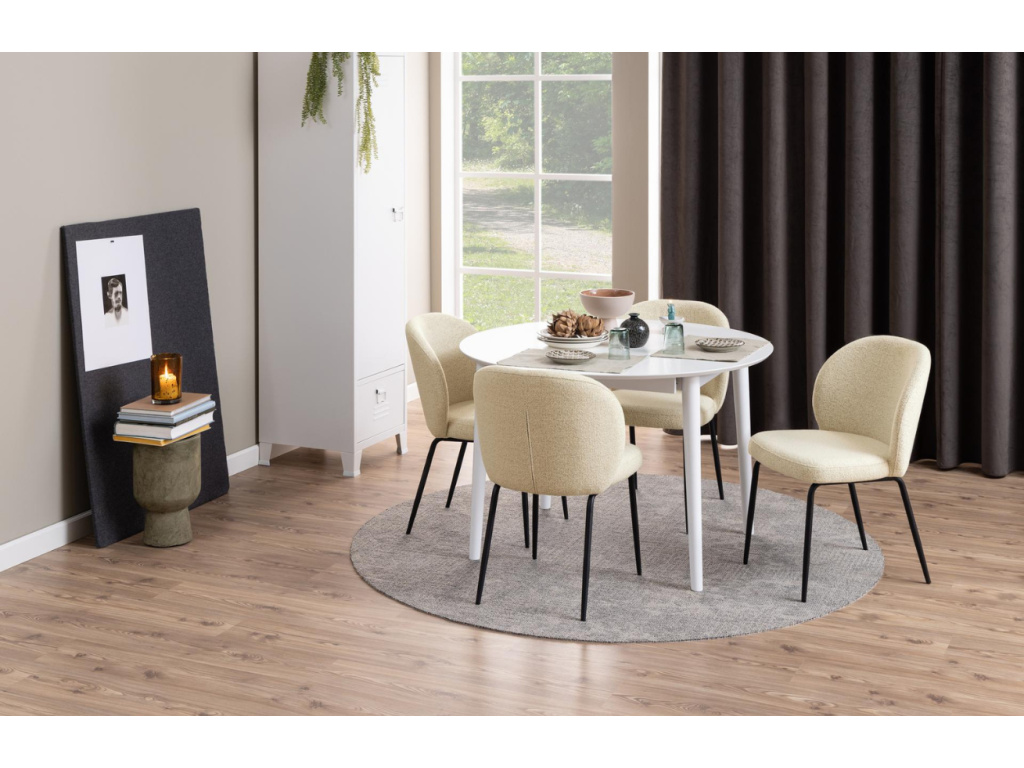 Udělejte ze svojí jídelny o něco elegantnější místo díky židli Felicia od značky Scandi. Trendy čalouněný sedák a opěradlo z bouclé tkaniny, která je velice měkká na dotek, poskytnou skvělé pohodlí při společných chvílích u jídla s rodinou či přáteli. Čalounění se vyznačuje také vysokou odolností vůči mechanickému poškození a navíc lze ze židle snadno sundat, což usnadňuje následné čištění. V nabídce pro vás máme hned několik barevných provedení. Užijte si pohodlí s tímto designovým kouskem!