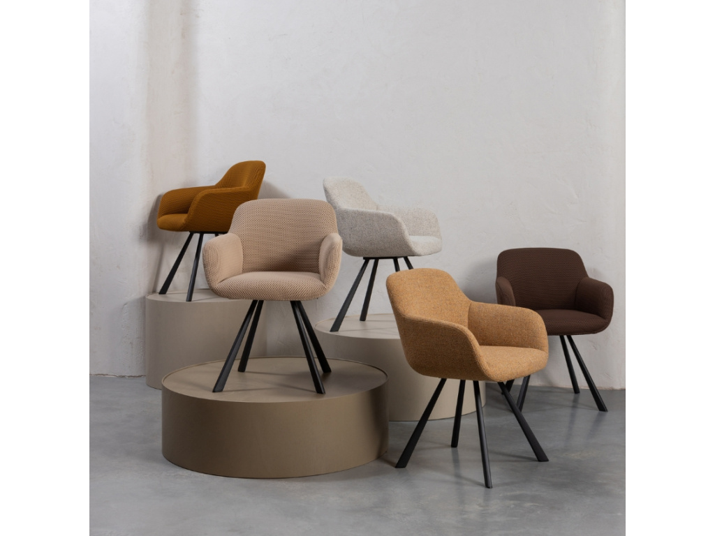 Stylový design jídelní židle June se stane velmi příjemným doplňkem vašeho jídelního koutu. Provedení čalounění v síťované tkanině s výrazným 3D efektem nabízí kvalitu díky garantované otěruvzdornosti Martindale 100 000. Područky obzvlášť oceníte při dlouhém posezení u stolu s rodinou. Moderní zužující se podnož z černě lakovaného kovu dodává židli krásný kontrast. Nezapomeňte se podívat do naší nabídky na celou sérii jídelních židlí June – máme širokou řadu barevných variací v různých materiálech. Můžete si je tak originálně nakombinovat podle svého gusta!