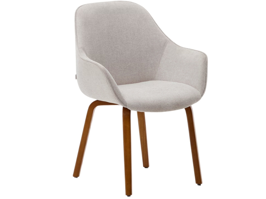 Podívám seBéžová čalouněná jídelní židle Kave Home Aleli s ořechovou podnoží