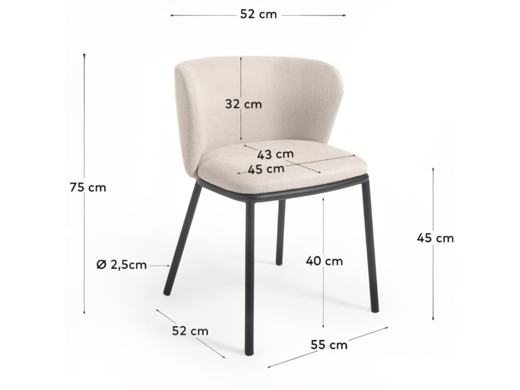 Designová jídelní židle Kave Home Ciselia zaujme na první pohled svým robustním opěradlem a texturou. Kombinace béžového čalounění s černou kovovou podnoží dodává židli Ciselia elegantní vzhled a maximální pohodlí. Židle bude krásným společníkem v rustikálních interiérech, využití najde také v komerčních prostorech. Například v kavárně u oblíbeného dezertu vám Ciselie ještě více zpříjemní vaši chvilku odpočinku.