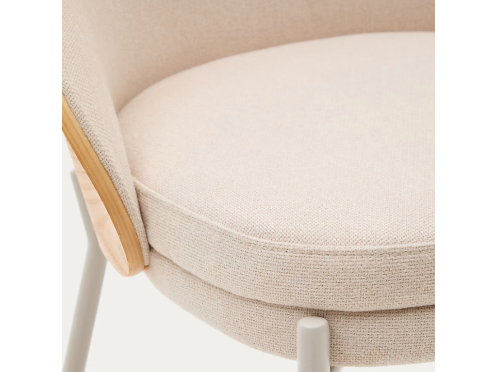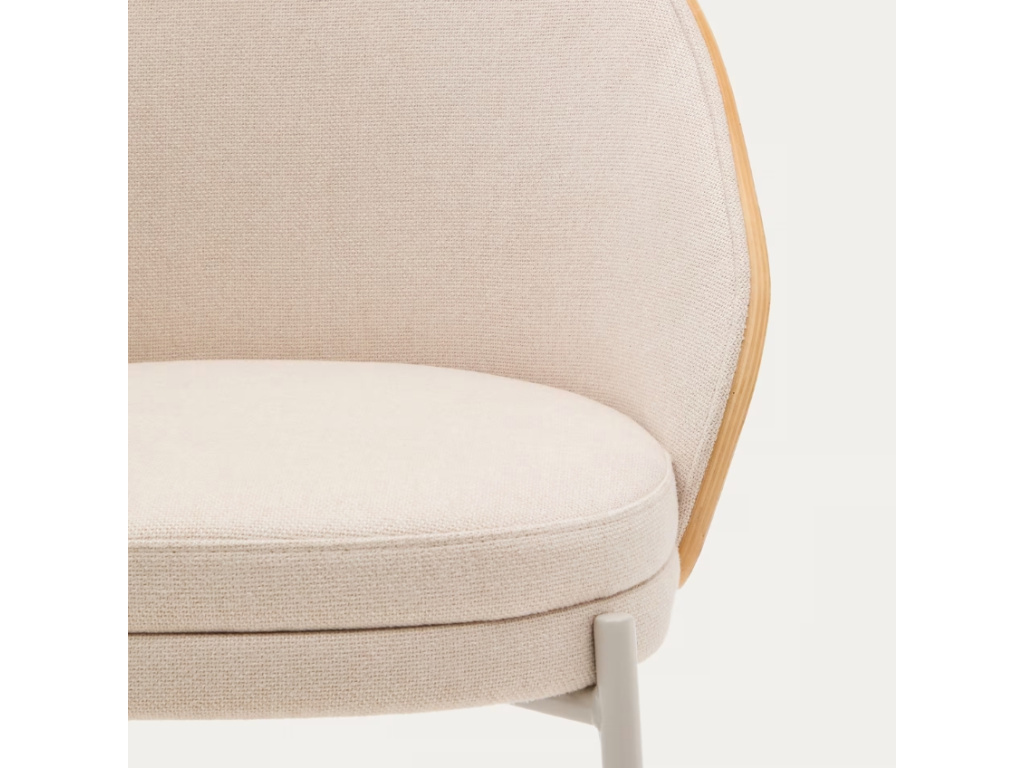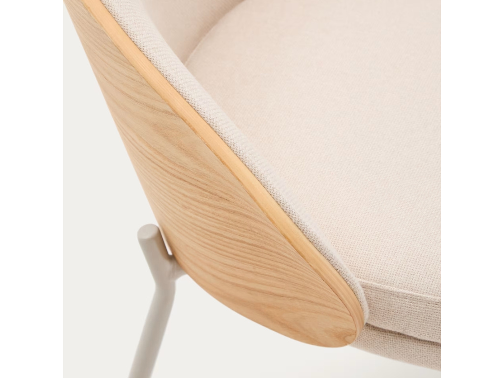 Židle Kave Home Eamy zaujme svým prostorným opěradlem, vyrobeným z přírodně zbarvené jasanové dýhy s krásnou výraznou kresbou. Vkusně jej doplňuje žinylkové čalounění béžové barvy a štíhlá kovová podnož. Eamy bude u jídelního stolu nejen pohodlným místem k sezením, ale také designovým kouskem, který dodá celé místnosti styl. Umístit ji ale můžete také do pracovny nebo do studentského pokoje – bude skvělým parťákem při práci i učení!