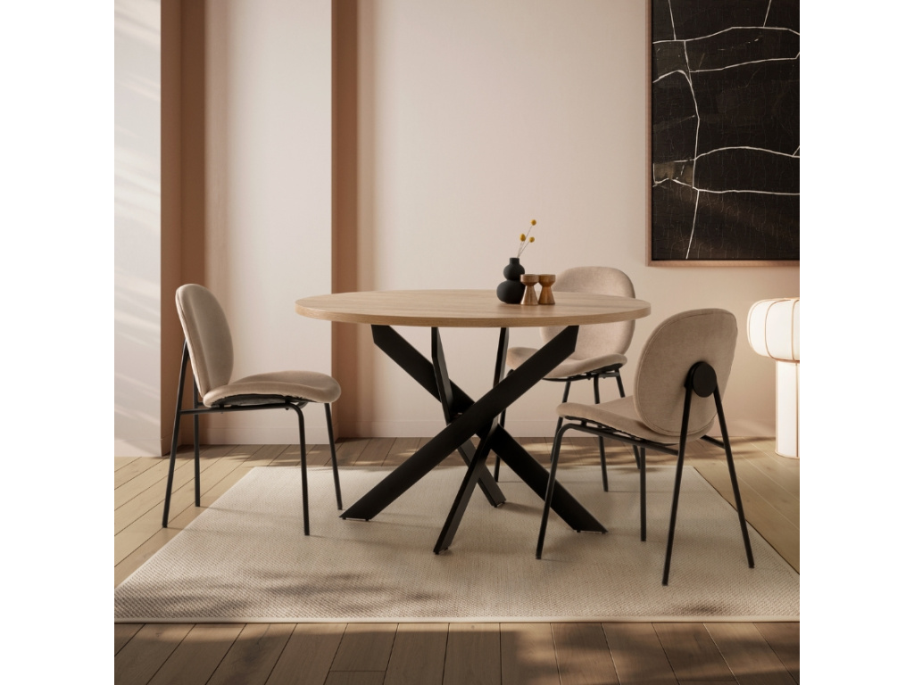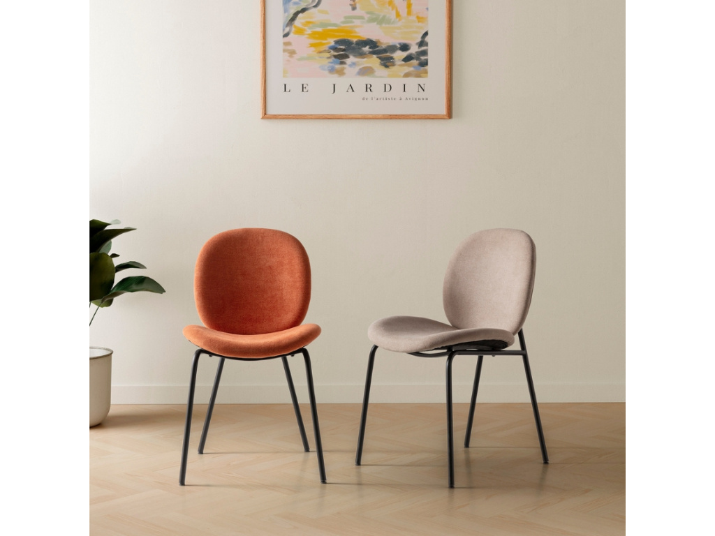 Jídelní židle Cori v béžovém odstínu zaujme jemnou elegancí a harmonickými oblými liniemi. Pohodlný čalouněný sedák s opěrkou je doplněn vzdušnou kovovou konstrukcí s výrazným zadním prvkem, který připomíná grafický detail. Kombinace neutrální barvy a subtilní podnože působí lehce a nadčasově, ideálně se hodí do skandinávských nebo minimalisticky laděných interiérů. Židle Cori je k dispozici ve variantě jídelní i barové a to ve dvou barevných verzích.