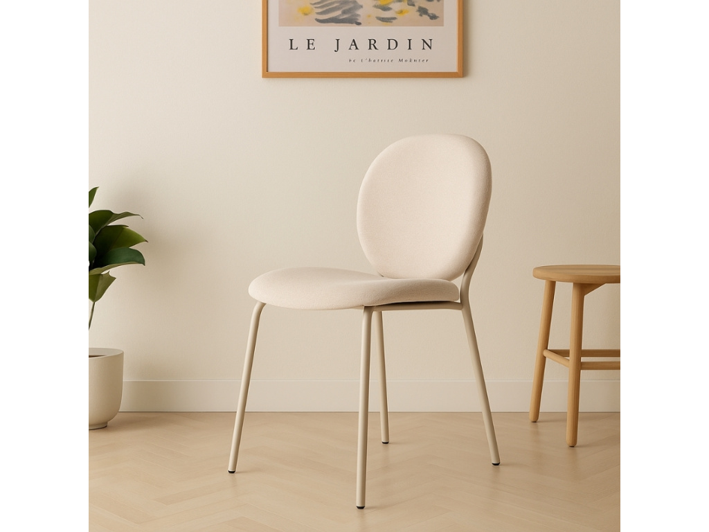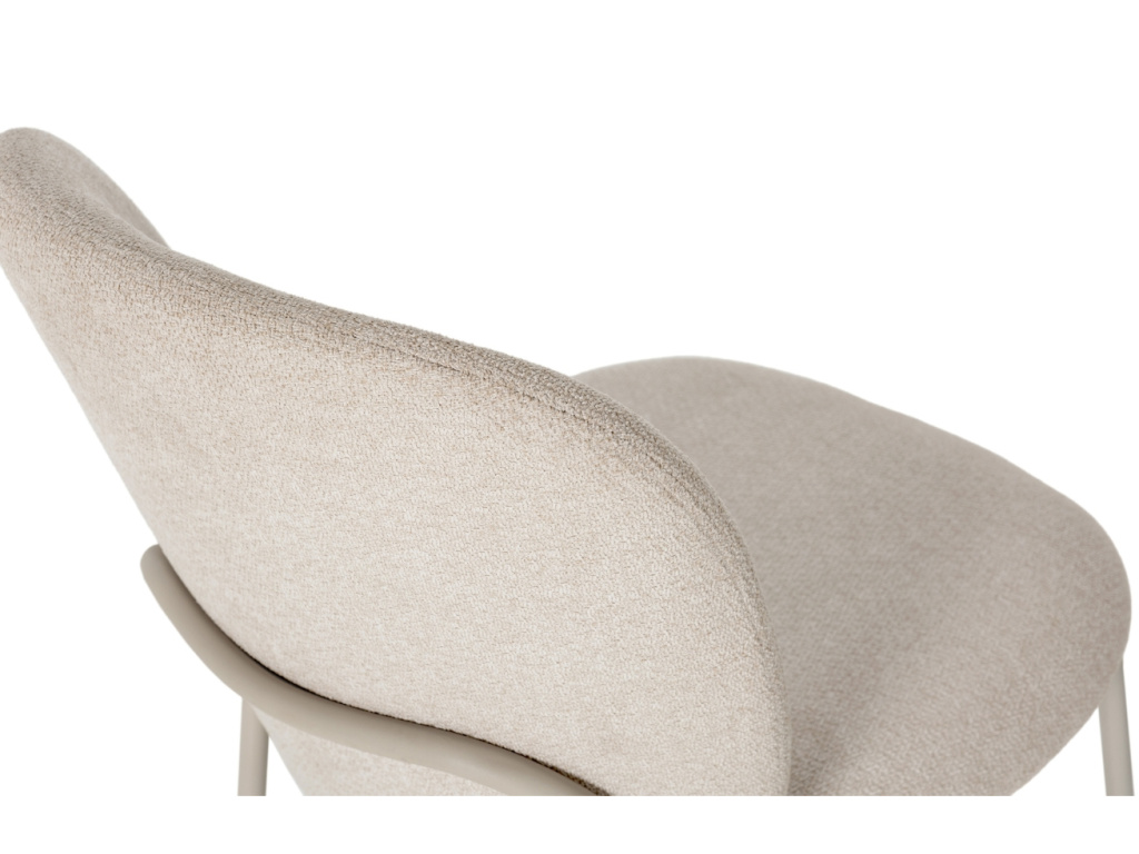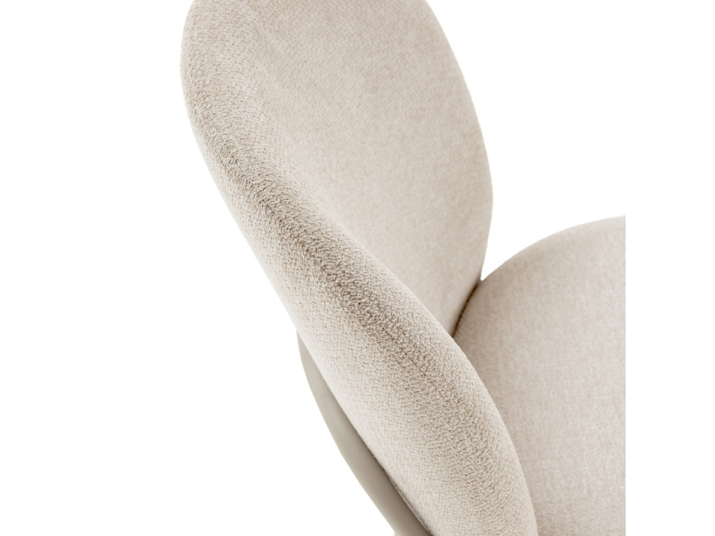 Jídelní židle Daia ve světle béžovém tónu působí čistě a klidně, ideálně doplní interiéry laděné v přírodních barvách. Hebká čalouněná tkanina dodává komfort, zatímco subtilní kovová konstrukce v identickém odstínu podtrhuje harmonii celku. Charakteristickým prvkem je plynule tvarovaná zadní výztuha, která elegantně objímá opěrku a zároveň zajišťuje její pevnost. Židle Daia je dostupná ve třech stylových variantách.