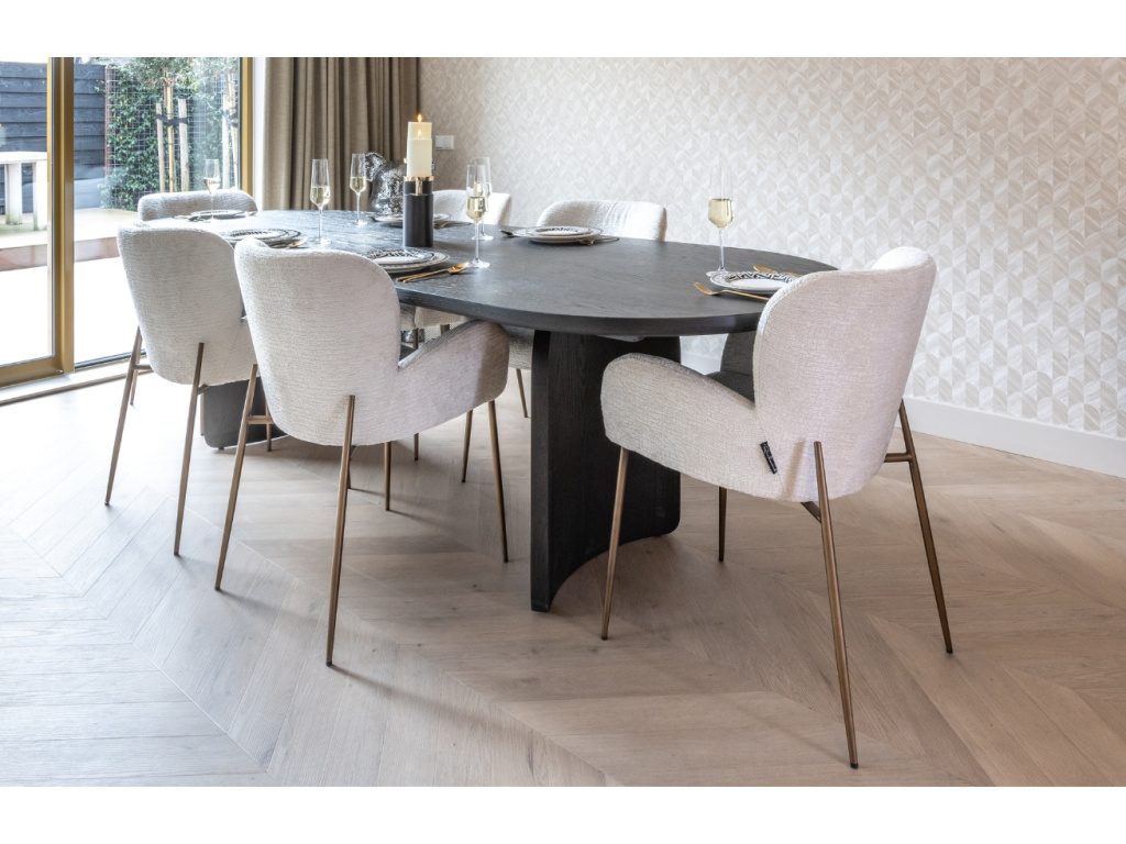 Jídelní židle Amber od značky Richmond vás na první pohled zaujme příjemným světle béžovým čalouněním s texturou, které zdobí sedák s elegantními područkami. Ten je doplněn o subtilní podnož z lakovaného kovu ve starozlaté barvě. Židle Amber bude stylovým a praktickým doplňkem každé moderní kuchyně či jídelny – vybrat si můžete ze dvou variant čalounění.