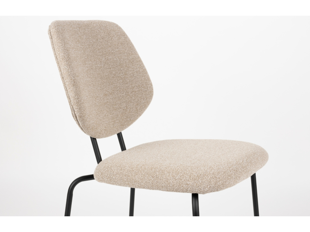 Jídelní židle Zelo zaujme lehkým a vyváženým designem, který v sobě přirozeně spojuje pohodlí s elegantní jednoduchostí. Oblé linie sedáku a opěrky působí měkce a přívětivě, zatímco štíhlá černá podnož dodává celku moderní kontrast a vizuální lehkost. Čalounění s jemnou strukturou umocňuje pocit útulnosti a snadno zapadne do skandinávských, moderních i minimalistických interiérů. Díky univerzálnímu vzhledu se židle Zelo dobře kombinuje s různými typy jídelních stolů a přirozeně vynikne v kuchyni, jídelně i pracovním koutku.