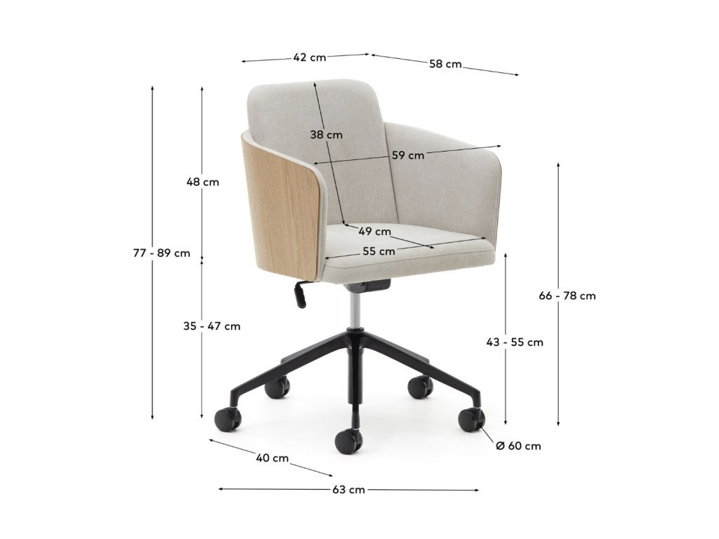Design, všestrannost a pohodlí, to je konferenční židle Medai značky Kave Home. Na první pohled zaujme atraktivní skořepinou z jasanové dýhy, kterou vkusně doplňuje béžové žinylkové čalounění. Zpříjemněte si s Medai dlouhé hodiny práce nebo pracovních schůzek a porad. Postarají se o to její oblé tvary, vysoké područky a podnož s nastavitelnou výškou. Využít ji můžete ve firemních kancelářích a konferenčních místnostech, ale i v domácích pracovnách nebo studentských pokojích.