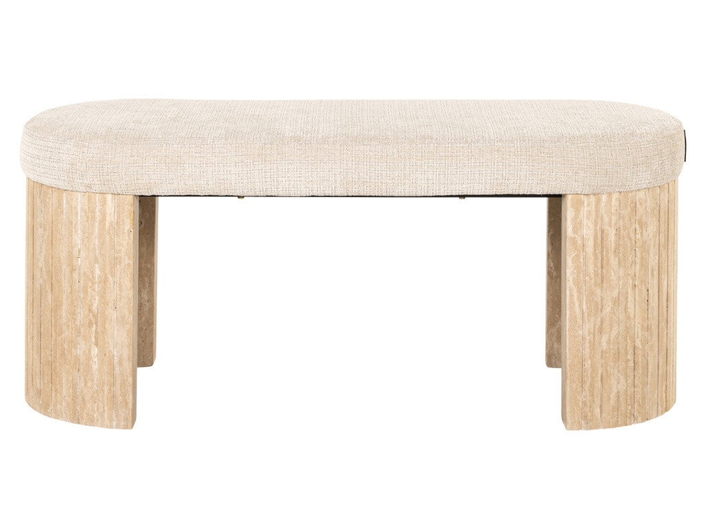 Lavice Gallice v béžovém čalounění s travertinovou podnoží vyniká svou přírodní elegancí a decentním šarmem. Měkké polstrování láká k odpočinku a díky odolným materiálům bude skvělým doplňkem do chodby nebo u nohou postele. Travertinová podnož navíc přináší do prostoru unikátní texturu a příjemný barevný tón, který se hodí do světlých, přírodně laděných interiérů.