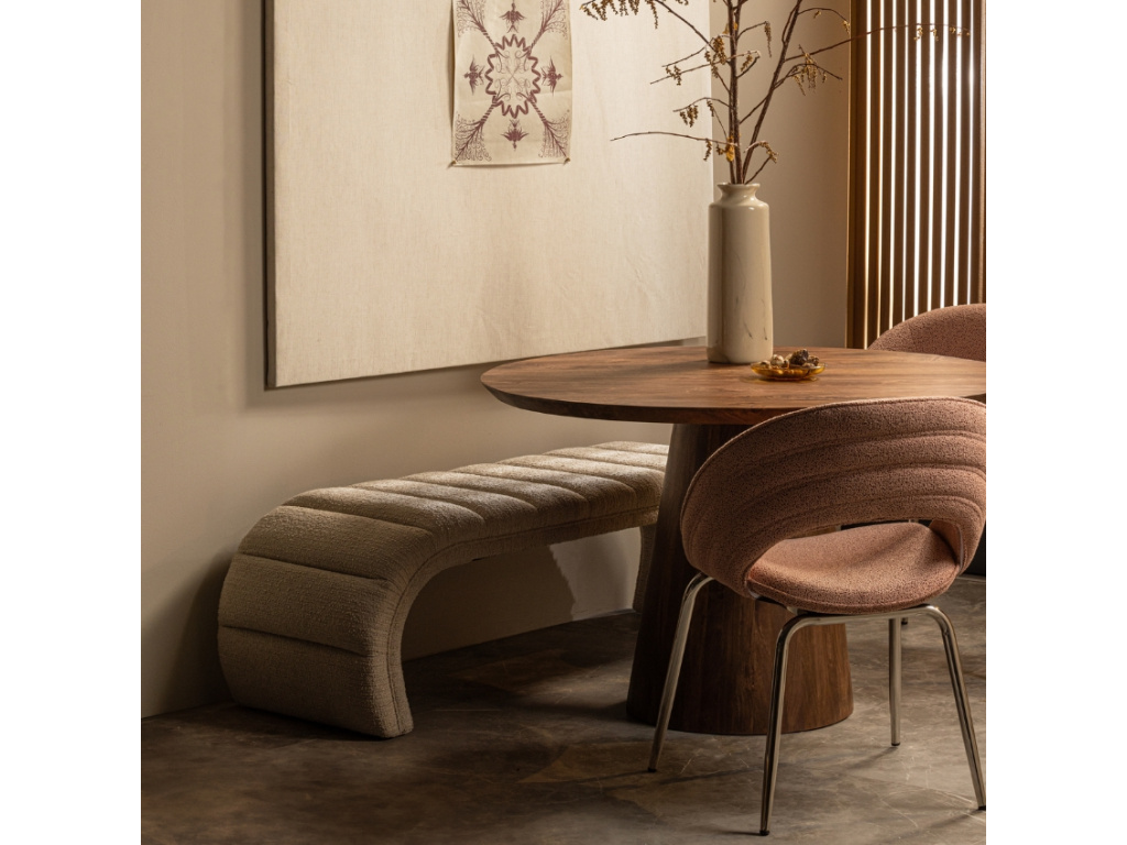 Béžová lavice Taffa ihned zaujme každou vaši návštěvu, která vejde do vaší předsíně! Má nápadný prošívaný vzor a je vyrobena z hrubě tkané látky s plyšovým vzhledem, která je ze 100% polyesteru, což velmi usnadňuje údržbu. Otěruvzdornost 100 000 Martindale zajistí maximální odolnost proti opotřebení. Zaoblený tvar a luxusní barevný odstín se hodí k minimalistickému designu i k tomu více extravagantnímu. Nebojte se experimentovat a zkombinujte tuto lavici s dalšími designovkami! K dostání je také ve vínově červené variantě.