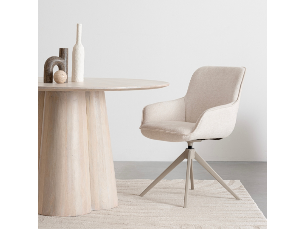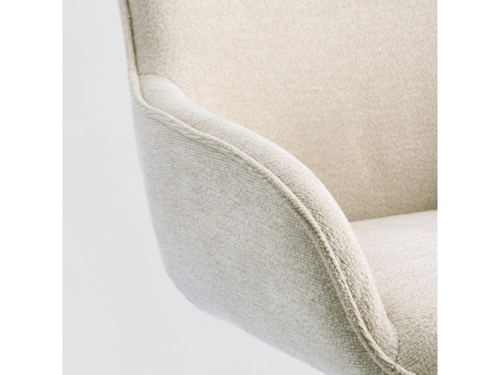 Židle Matilda bude skvěle fungovat tam, kde se potkává styl s každodenní praktičností. Její oblý tvar s područkami a jemné čalounění zaručí pohodlí i při delších večeřích nebo pracovních schůzkách. Její praktická otočná funkce s návratným mechanismem vám usnadní vstávání od stolu. Béžový odstín v kombinaci s elegantní kuželovou podnoží působí čistě a krásně zapadne například do interiéru ve stylu city glam nebo světlého minimalismu. Matilda nebude jen obyčejnou židlí, ale funkčním kouskem, který si rychle oblíbíte.