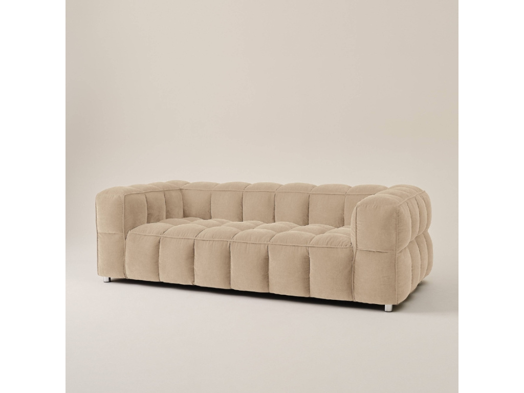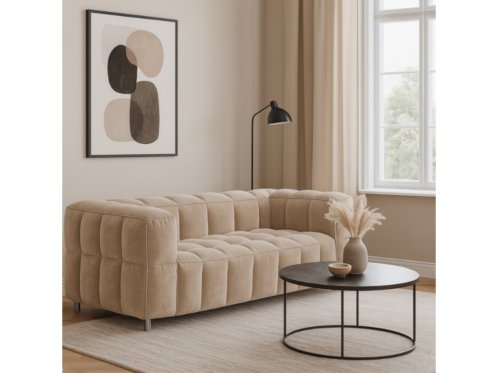 Pohovka MEDFORD je přesně ten typ nábytku, který na sebe strhne pozornost – a zaslouženě. Její měkké, obloukovité tvary působí nadýchaně a hravě, zároveň ale zůstávají elegantní a moderní. Prošívaný žinylkový potah dodává pohovce jedinečný charakter a jemnou strukturu, která láká k doteku i lenošení. S délkou 230 cm nabídne MEDFORD spoustu prostoru pro pohodlné sezení – ať už na ni usednete sami nebo s rodinou či přáteli. Hluboké sedáky a měkká výplň vás obejmou a nedovolí vstát dřív, než opravdu musíte. MEDFORD je pohovka, která pozvedne váš interiér, ať už ji umístíte do minimalistického loftu nebo do útulného scandi obýváku.