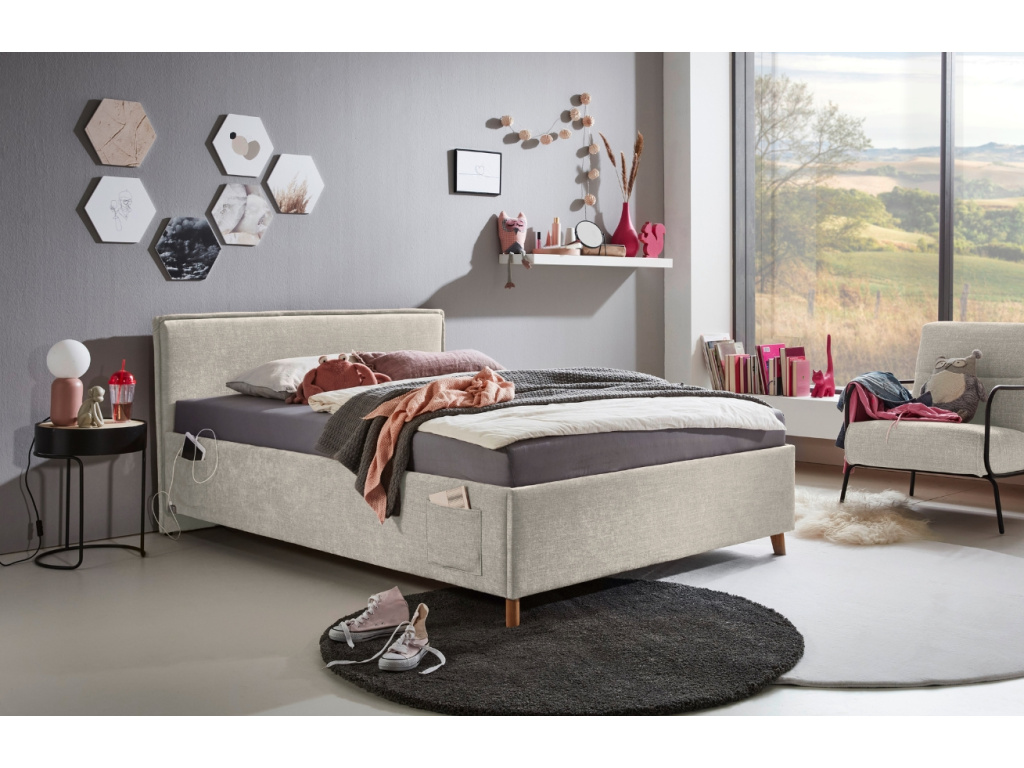 Stylová postel Fun s čalouněným rámem i prostorným čelem je skvělou volbou pro dětské i studentské pokoje. Na jejím boku najdete prostorné kapsy, do kterých se vejde vše, co bude potřeba mít před spaním po ruce – knížka, časopis, herní konzole i drobné hračky či brýle na čtení. Dalším praktickým detailem je zabudovaný výstup pro USB i USB-C, díky kterému je možné nabíjet telefon, MP3 přehrávač nebo třeba hodinky. Postel Fun je navíc dostupná ve čtyřech barvách, ze kterých si vyberou kluci i holky. K dostání je také varianta s čalouněným bočním panelem.