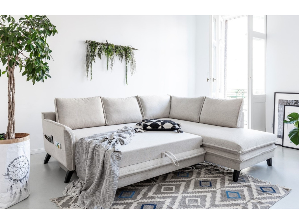 Praktická rohová rozkládací pohovka Charming Charlie od značky Miuform vás zaujme již na první pohled svým decentním designem. Příjemné čalounění ze strukturované látky v béžovém odstínu dodává pohovce moderní a zároveň minimalistický vzhled. V případě potřeby se dá tato pohovka jednoduše rozložit na pohodlné lůžko pro 2 osoby. Příjemným bonusem jsou i kapsy na boční straně pohovky, díky kterým získáte praktickou úschovnu pro váš ovladač či oblíbenou knížku. Nechte se okouzlit tímto nadčasovým kouskem, který nabízíme v dalších barvách a provedeních! Doporučujeme ji kombinovat s dalším nábytkem z řady Charming Charlie.