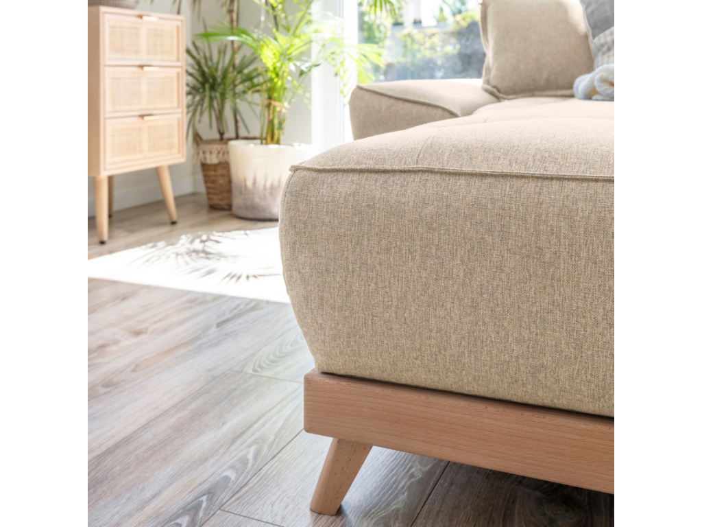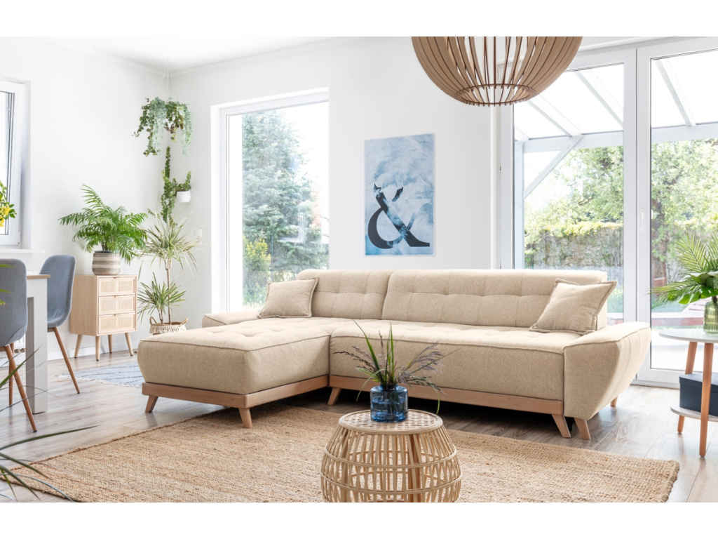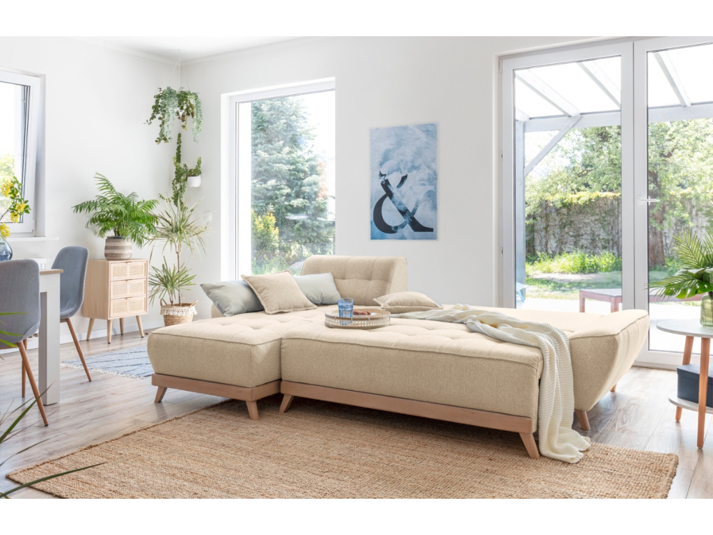 Rohová rozkládací pohovka Dazzling Daisy od značky Miuform snoubí moderní design a funkčnost se skandinávským nádechem. Dazzling Daisy je ideální pohovkou především do interiérů, kde potřebujete uspořit místo na sezení i spaní. V pár jednoduchých krocích získáte z pohovky pohodlné a prostorné lůžko na spaní pro návštěvu a nechybí ani úložný prostor pro veškeré lůžkoviny a polštářky. Podnož z borovicového dřeva v přírodní barvě dodává nábytku vzdušný dojem. Příjemná látka zajistí pohodlí a elegantním doplňkem k pohovce jsou dva dekorativní polštáře. Vyberte si svou ideální pohovku z řady Dazzling Daisy, která nabízí několik barevných provedení.