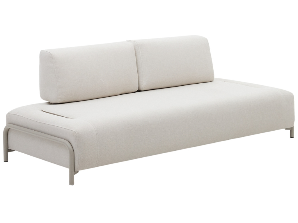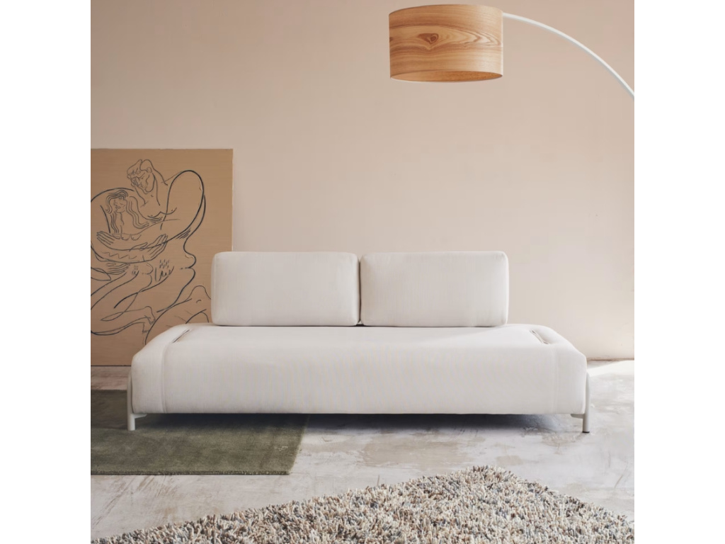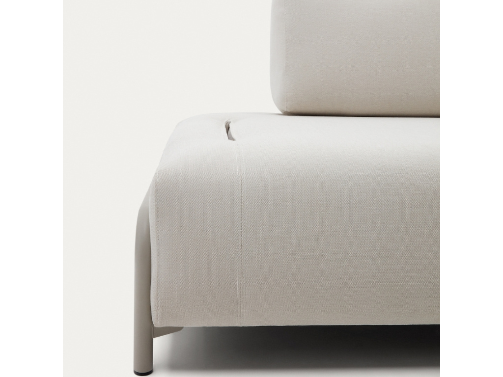 Stylová pohovka Kave Home Compo zaujme svým moderním vzhledem. Příjemné látkové čalounění doplněno o designovou kovovou podnož vytváří atraktivní kontrast, který do vašeho domova vnese příjemnou atmosféru a osobitý design. Praktickým bonusem je možnost doplnit pohovku o praktický stolek nebo polštář ze stejnojmenné řady, které jednoduše zasunete do připravených otvorů. Kdykoliv je můžete vyměnit za jiný doplněk a pohovku tak dokonale přizpůsobit svým momentálním potřebám.
