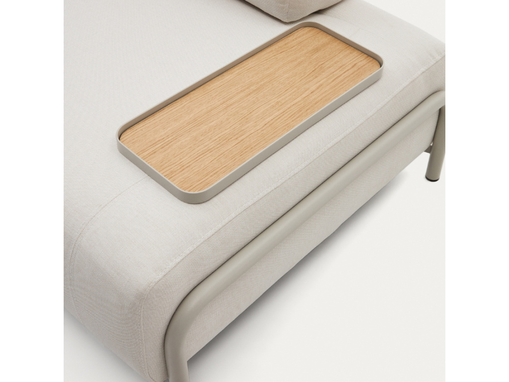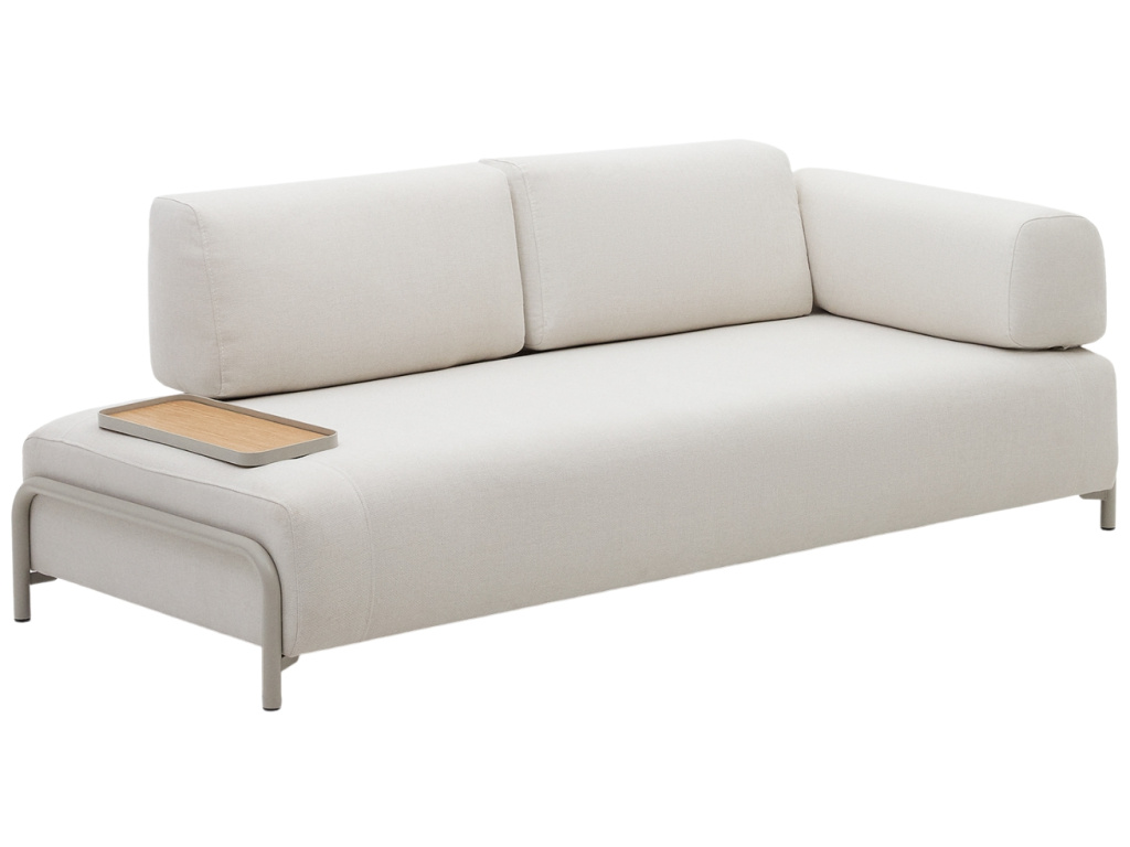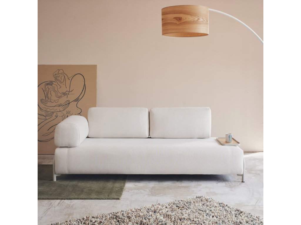 Stylová pohovka Kave Home Compo zaujme svým moderním vzhledem. Příjemné látkové čalounění doplněno o designovou kovovou podnož vytváří atraktivní kontrast, který do vašeho domova vnese příjemnou atmosféru a osobitý design. Praktickým bonusem je malý odkládací stolek a opěrný polštář, které ale kdykoliv snadným vysunutím odstraníte. Doplňky ze stejnojmenné série můžete dle libosti obměňovat a kombinovat a přizpůsobit tak pohovku aktuálním potřebám.