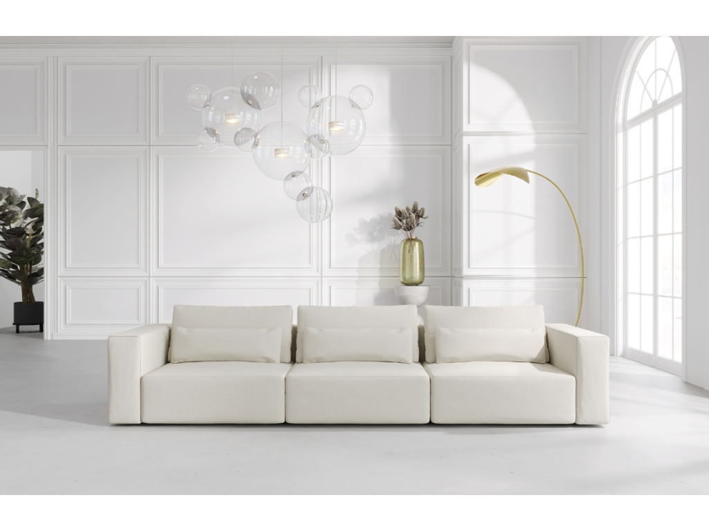 Modulární třímístná pohovka Riposo se hodí do minimalistických či skandinávských interiérů, do kterých vnese eleganci, styl a nadčasovost. Riposo je čalouněna kvalitní polyesterovou látkou LUKKA, která se pyšní vysokým martindale. Je proto vhodná i do domácností s dětmi nebo domácími mazlíčky. Díky jejímu provedení a dekorativním polštářkům si sezení v její společnosti zamilujete – ať už budete odpočívat u filmu nebo si budete užívat společný čas s rodinou, třeba u deskových her. Doplňte ji o konferenční stolek, polštářky nebo pléd a užijte si v její náruči zasloužený relax. Pohovku nabízíme i v dalších barvách, velikosti a provedeních!