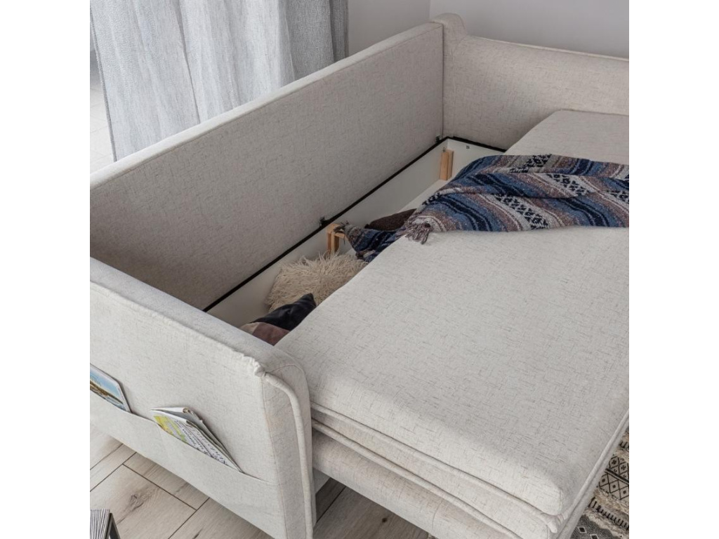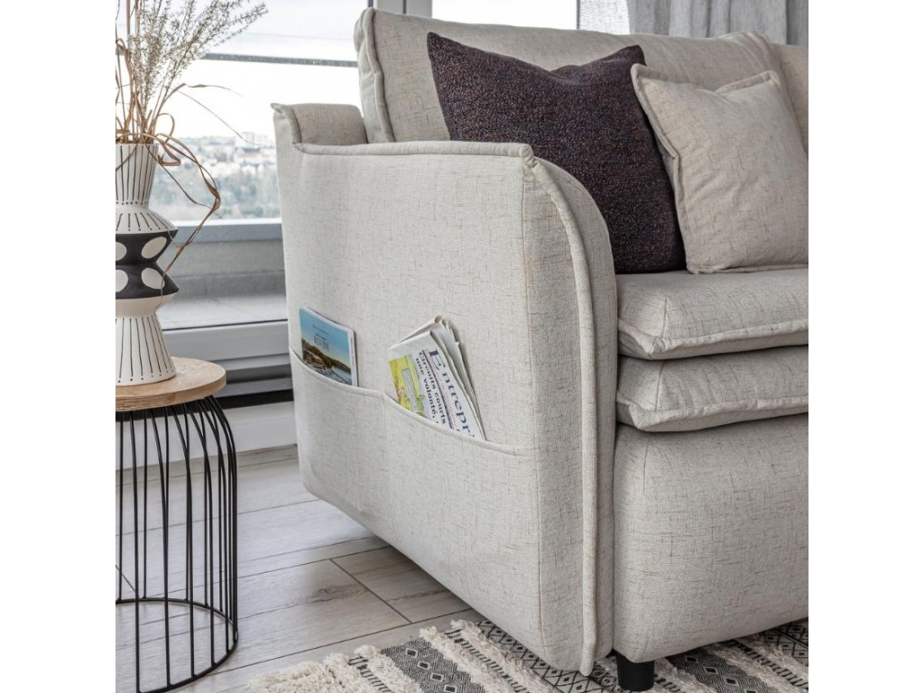 Stylová třímístná rozkládací pohovka Charming Charlie od značky Miuform vás zaujme již na první pohled svým netradičním designem. Příjemné čalounění ze strukturované látky v béžovém odstínu dodává pohovce moderní a zároveň efektivní vzhled. Inovativní použití povrchové matrace, která je nedílnou součástí pohovky, zajišťuje vysoký komfort spánku. Příjemným bonusem jsou kapsy na boční straně křesla, díky kterým získáte praktickou odkládací plochu pro váš ovladač či oblíbenou knížku. Pohovka se díky 90.000 martindale cyklům skvěle hodí nejen do moderních interiérů, ale také do komerčních prostor jako jsou hotelové lobby apod. Nechte se okouzlit pohovkou Charming Charlie. Doporučujeme kombinaci více prvků z řady Charming Charlie.