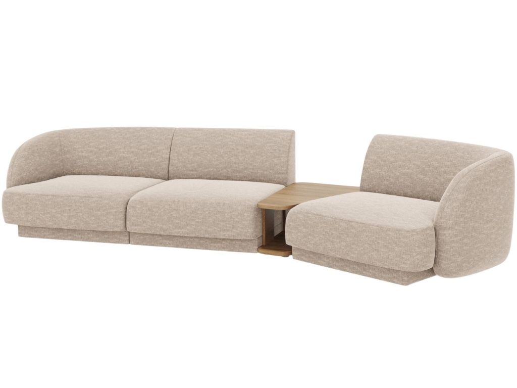 Trojmístnou pohovku Miley od značky Micadoni si zamilujete! Její obloukovitě tvarované opěradlo vybízí k tomu, abyste se na chvíli pohodlně usadili. Mírně zapuštěná základna dodává sezení vznášející se charakter, který dotváří vzhled připomínající oblak. Žinylková potahová látka je velmi příjemná až téměř hedvábná na dotek. Probarvené nitě vytvářejí poutavou 3D strukturu se stínovým a lesklým efektem. Tkanina je velmi odolná proti oděru, díky tomu je pohovka vhodná i do komerčních prostor. Vysoká kvalita a neobyčejný vzhled látky dodávají nábytku sofistikovaný dojem, který umožňuje jeho široké využití v moderním nebo skandinávském stylu. Integrovaný konferenční stolek je nejen designovým prvkem, ale také praktickým místem pro odložení věcí, které chcete mít po ruce, nebo pro umístění dekorací. K pohovce je možné přikoupit další produkty z kolekce Miley. Díky tomu si můžete vytvořit sedací soupravu, kterou je vhodné kombinovat se skleněným nebo dřevěným konferenčním stolkem.