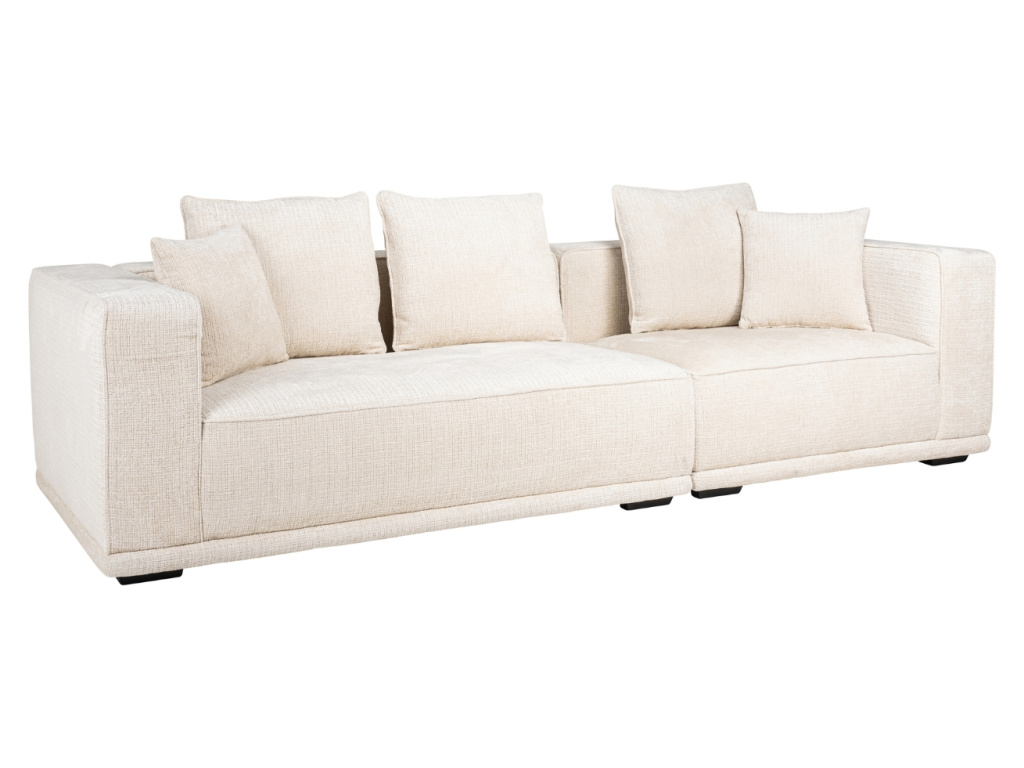 Trojmístná pohovka Lusso značky Richmond svým minimalistickým vzhledem výborně vynikne v moderních interiérech, a to zejména díky univerzálnímu krémově bílému odstínu. Příjemné čalounění žinylkovou látkou a měkký sedák je zárukou maximálního pohodlí, které si zamiluje celá vaše rodina. Lusso je praktický kus nábytku, který spojuje moderní design a pohodlí.