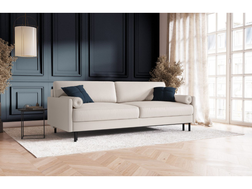 Trojmístnou pohovku Scott kdykoliv snadno proměníte v lůžko pro vaši nečekanou návštěvu. Pohovka se pyšní jednoduchým elegantním designem, který je umocněn vyšší štíhlou podnoží. Kvalitní čalounění s látkou s vodoodpudivou funkcí je odolné vůči vznícení a splňuje cigaretový test. Látka je navíc je dostupná v široké škále barev, takže si snadno zvolíte tu, která se do vašeho obývacího pokoje bude nejlépe hodit. Dopřejte vašemu obývacímu pokoji tento stylový kousek a užívejte si v jeho pohodlném náručí rodinné filmové večery i chvilky relaxu s knížkou v ruce!