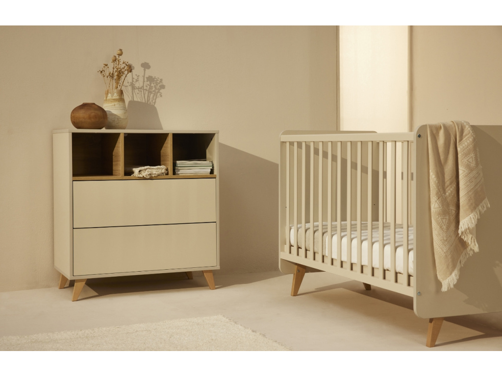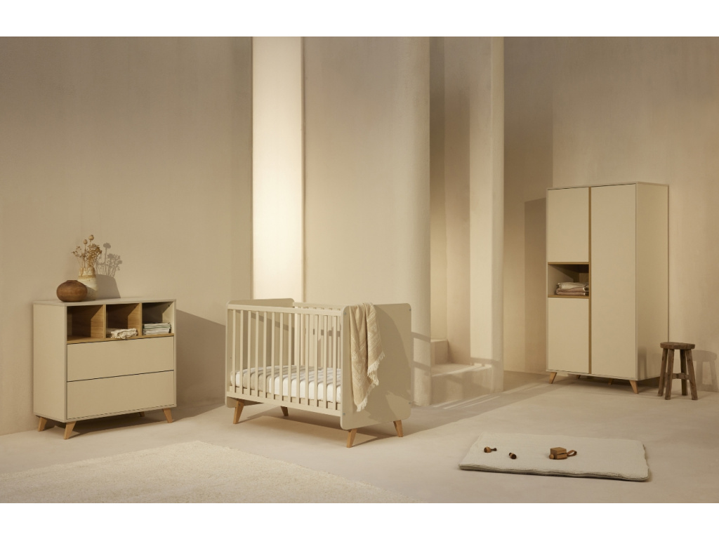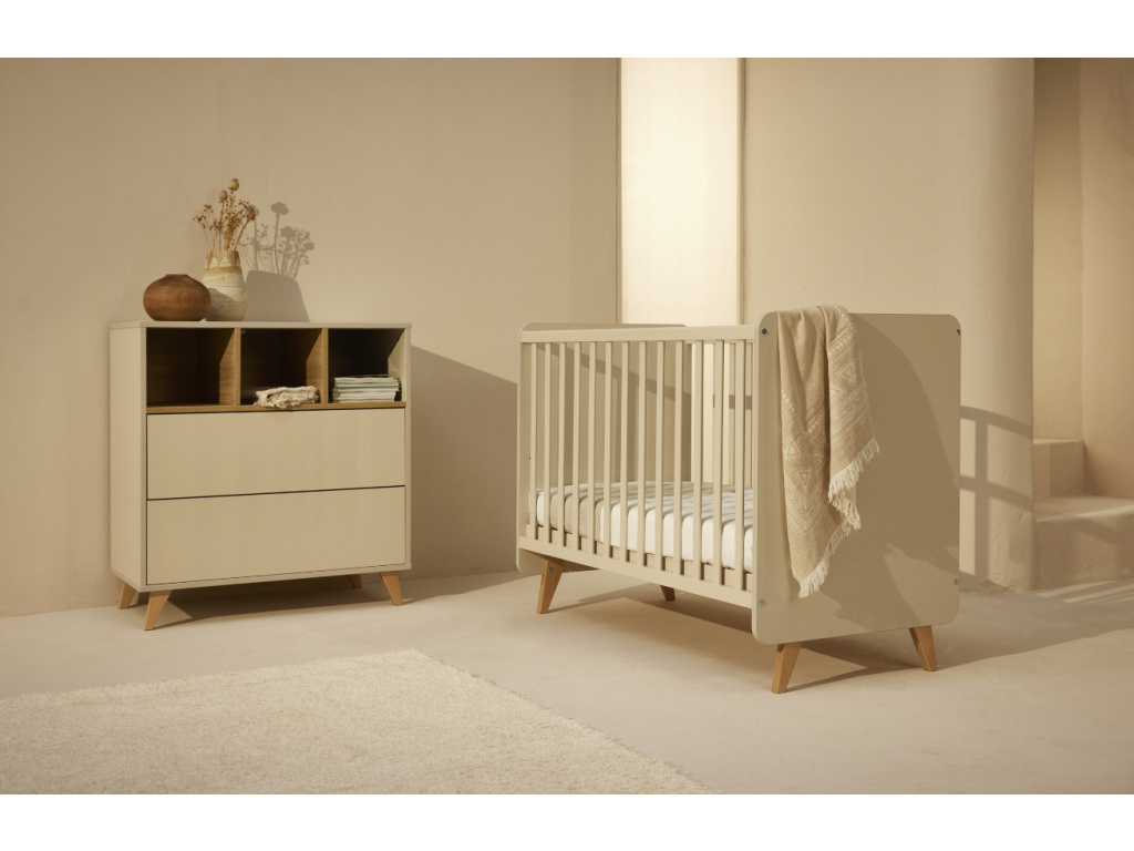 Dětská postýlka Quax Loft propojuje nadčasový design s funkčností, kterou ocení každý rodič. Díky třem nastavitelným výškám roštu roste spolu s dítětem a přizpůsobí se každé fázi jeho vývoje. Jakmile nadejde čas, lze ji snadno přeměnit na otevřenou postýlku odmontováním bočnice s lištami. A později dokonce i na juniorské lůžko s pomocí prodlužovací sady (prodává se zvlášť), která zajistí delší využití. Postýlka se tak stává dlouhodobou investicí, která doprovází dítě od narození až do školních let – s důrazem na pohodlí, kvalitu a nadčasový styl. Konstrukce je kompletně vyrobená z laminátu v něžné béžové barvě, která v kombinaci s masivní bukovou podnoží vytváří jemný kontrast. Povrchová úprava ekologickým lakem splňuje přísné bezpečnostní normy, aby vaše dítě spalo v naprostém bezpečí. Vsaďte na udržitelnost a investujte do budoucnosti – díky této sérii postelí Loft od značky Quax, která je navržena v konceptu Good to Grow, může vaše dítě mít stejnou postel od narození až do 10 let.