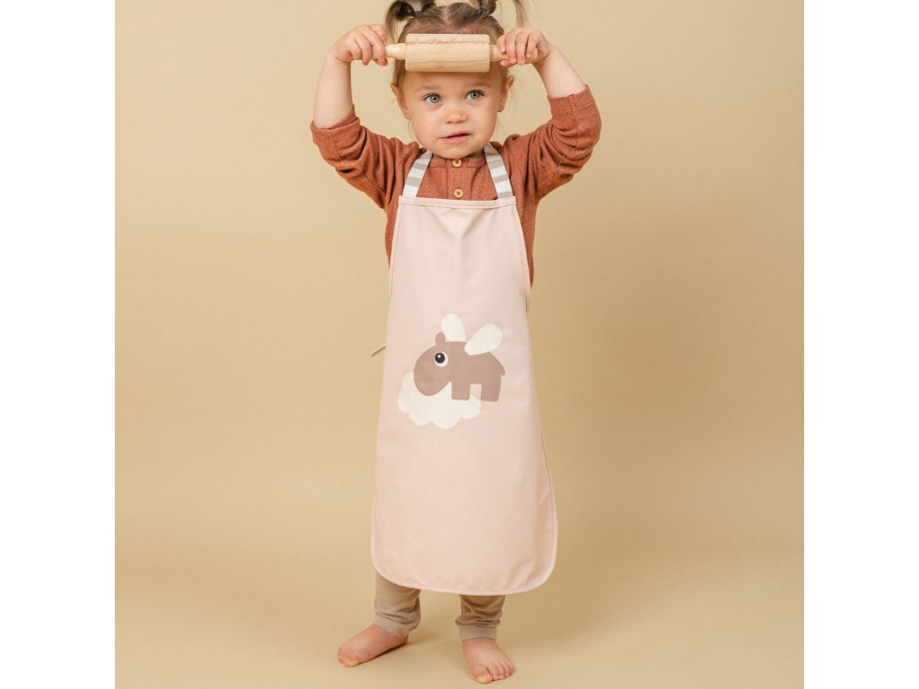 S dětskou zástěrou Happy clouds od Done by Deer se nemusíte bát špinavého oblečeni vašich ratolestí. Zástěra je vyrobena z voděodolné látky, která nepropustí nečistoty a navíc se velmi snadno čistí. Při větším znečištění ji můžete také vyprat v pračce na 30°C. Děti si zástěru zaručeně zamilují nejen kvůli atraktivní barvě, ale i kvůli veselému potisku lamy Lalee. Mohou vám tak pomáhat s vařením, pečením nebo se věnovat kreativním aktivitám.