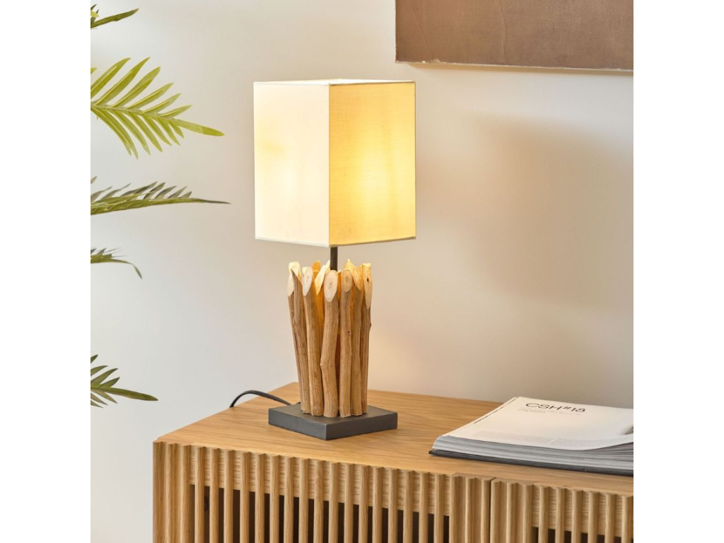 Stylová stolní lampa Kave Home Boop zaujme na první pohled svou originálně zpracovanou podstavou. Kousky masivního tropického dřeva vytváří společně s látkovým stínidlem atraktivní kontrast, který vás upoutá a dodá vašemu interiéru unikátní a osobitý prvek. Lampa se skvěle hodí do interiérů s důrazem na přírodní prvky.