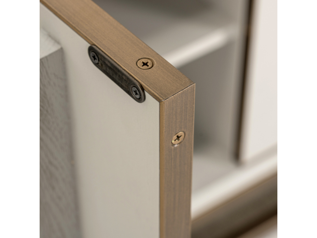 Objevte ztělesnění odvážné elegance s komodou Whitebone od značky Richmond, která je charakteristická výrazným barevným kontrastem. Tento nápadný kousek je vyroben z kvalitní dubové dýhy, která ztělesňuje trendovou estetiku. Její robustní železný rám a mosazné úchytky dodávají komodě nadčasovost a dojem prémiové kvality, zatímco čtyři dvířka odhalují dostatek uzavřeného úložného prostoru pro váš inventář. Tři otevřené police jsou ideální pro vystavení dekoračních předmětů. Komoda se skvěle hodí do interiérů laděných do glamour, minimalistického nebo industriálního stylu.