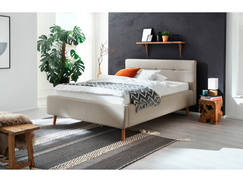 Stylová dvoulůžková postel Lotte od značky Meise Möbel zaujme na první pohled svým elegantním designem. Příjemné látkové čalounění v šedé barvě vytváří v kombinaci s designovým prošíváním a masivní dubovou podnoží jedinečný kontrast, který do vašeho interiéru vnese trendy prvek. Postel disponuje roštem, který zajistí maximální komfort a bezpečí při spánku. Její součástí je praktický úložný prostor – díky výklopnému systému do něj můžete pohodlně sklízet peřiny i polštáře nebo třeba sezónní oblečení.