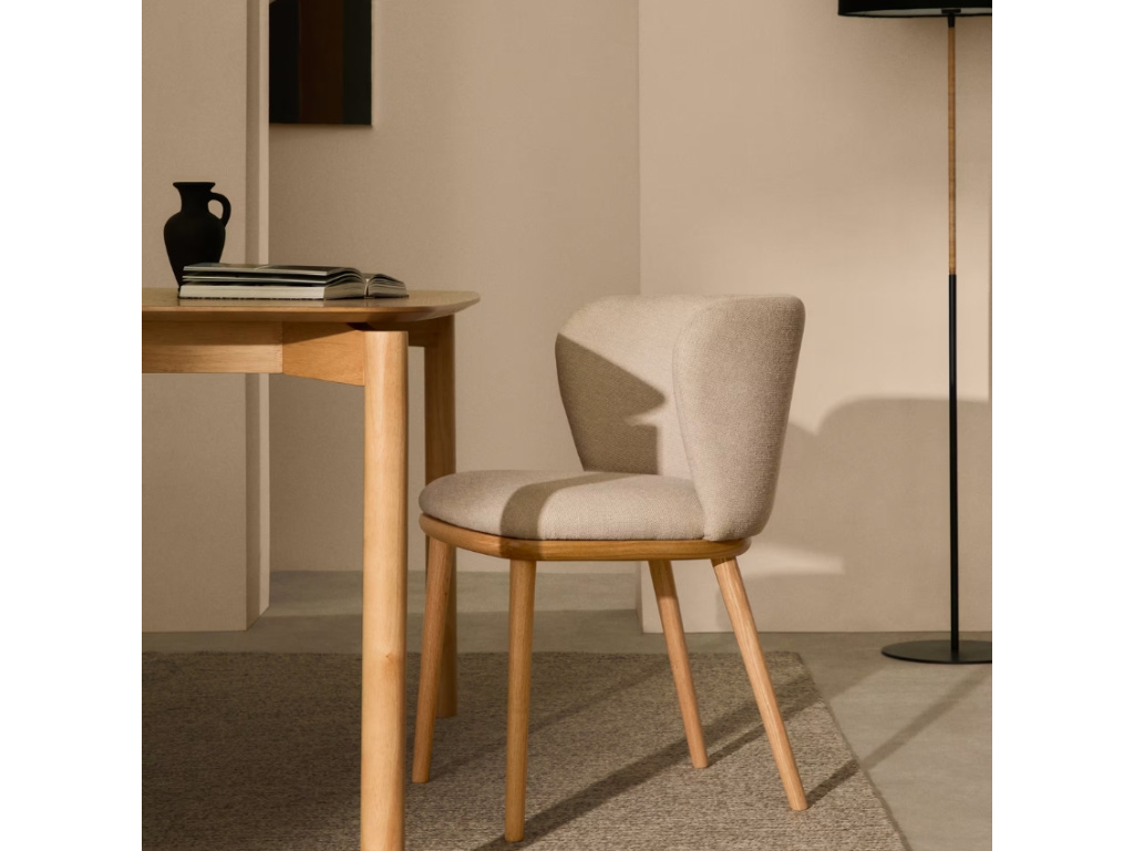 Béžová jídelní židle Kave Home Ciselia s dřevěnou podnoží