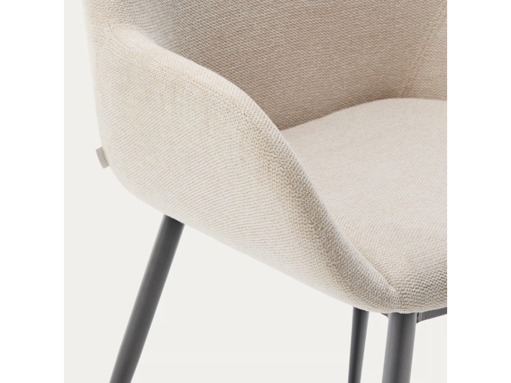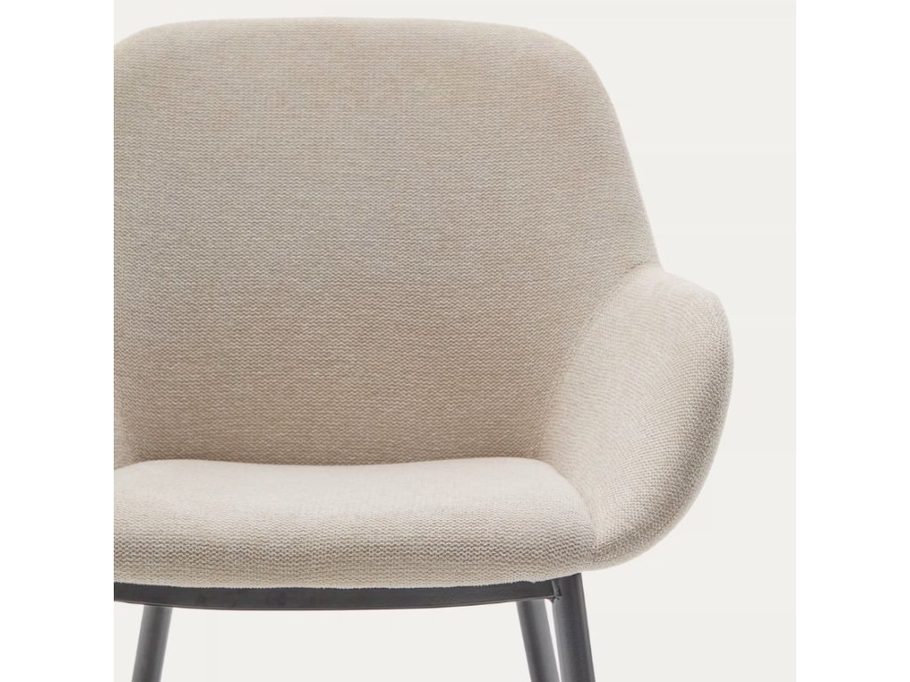 Jídelní židle Konna je dokonalým spojením stylu a komfortu. Podnož z lakovaného kovu v černém provedení přináší eleganci a čalouněný sedák s prostorným opěradlem a područkami zajišťuje nejen pohodlí, ale také příjemný elegantní vzhled. Jemná textura žinylky přidává židli na sofistikovanosti, a díky svému univerzálnímu designu skvěle zapadne jak do moderních, tak do klasičtěji zařízených interiérů. Konna přinese stylový akcent ke každému jídelnímu i pracovnímu stolu a bude ideální volbou pro ty, kteří si cení nadčasové elegance a kvality.