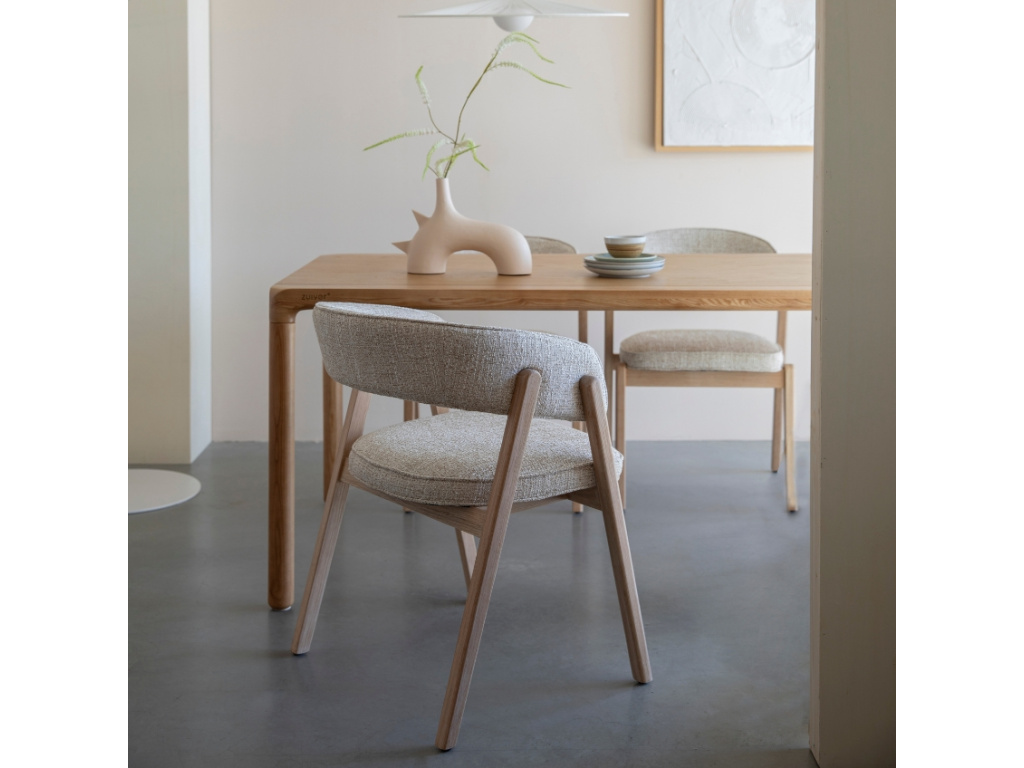 Jídelní židle Bright zaujme na první pohled svým měkce polstrovaným sedákem a opěrkou, které doslova vybízejí k usednutí. Je ideální volbou k jídelnímu stolu, do pracovny nebo stylové kavárny – všude tam, kde se snoubí pohodlí s nadčasovým designem. Její čalounění v jemném béžovém odstínu působí svěže, zatímco dubová podnož dodává celku na eleganci. Bright je skvělou volbou do každého prostoru, kde se potkává styl s funkčností.