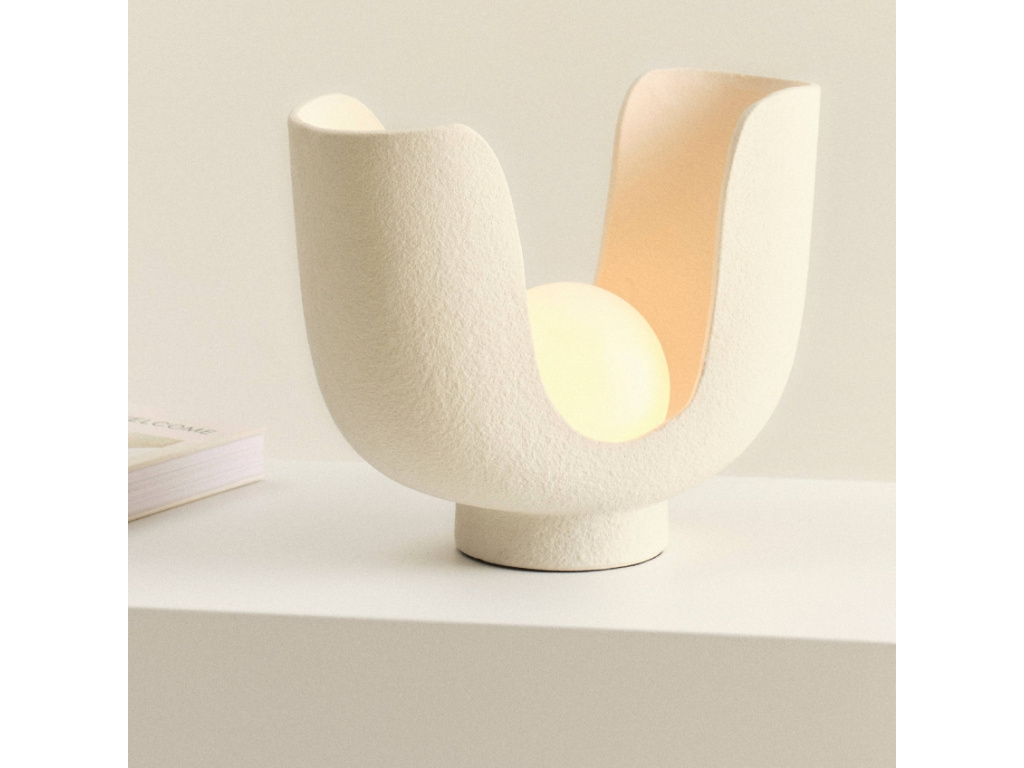Stolní lampa ARMENA je jako moderní umělecký objekt – jemná, organická a dokonale vyvážená. Její matný světlý povrch a oblý tvar vytvářejí dojem hliněné sochy, v jejímž středu se ukrývá světelná koule jako zářící perla. Díky svému jedinečnému tvaru lampa nejen svítí, ale především dotváří atmosféru – klidnou, harmonickou a vizuálně čistou. Skvěle vynikne na nočním stolku, komodě nebo jako solitér v obývacím pokoji. ARMENA je designový kousek, který propojuje světlo, materiál a ticho v jeden elegantní celek.