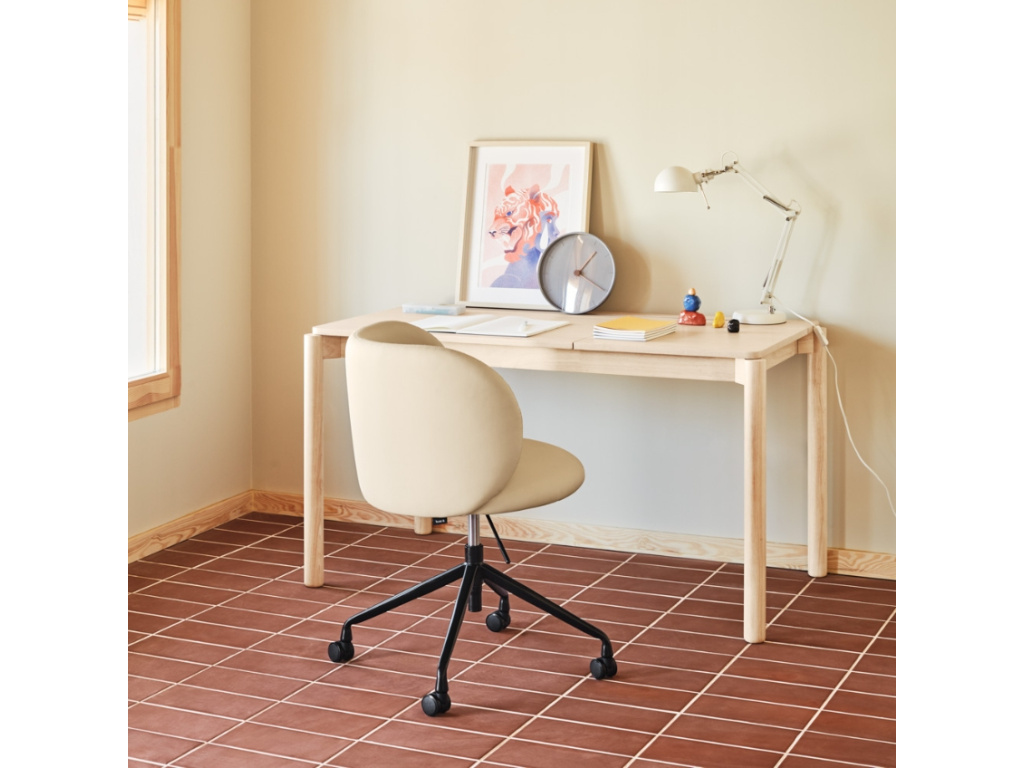 Hledáte designovou kancelářskou židli, která působí elegantně a luxusně? Konferenční židle Mogi z ekokůže od španělské značky Teulat je skvělou volbou do salonů krásy nebo designových kanceláří. Otočná béžová židle na kolečkách s pohodlným širokým sedákem poskytne vám či vašim hostům maximální komfort. Zaoblená měkká opěrka vás příjemně obejme a poskytne pohodlnou oporu zad i při delším sezením. Vkusné čalounění ekokůží v neutrální béžové barvě je doplněno kontrastní černě lakovanou, kovovou podnoží se čtyřmi rameny zakončenými kolečky. Pod sedákem najdete praktickou páku, se kterou snadno nastavíte výšku židle. Oceníte jistě také certifikaci a evropskou normu nehořlavosti (EN 1021 1&2).