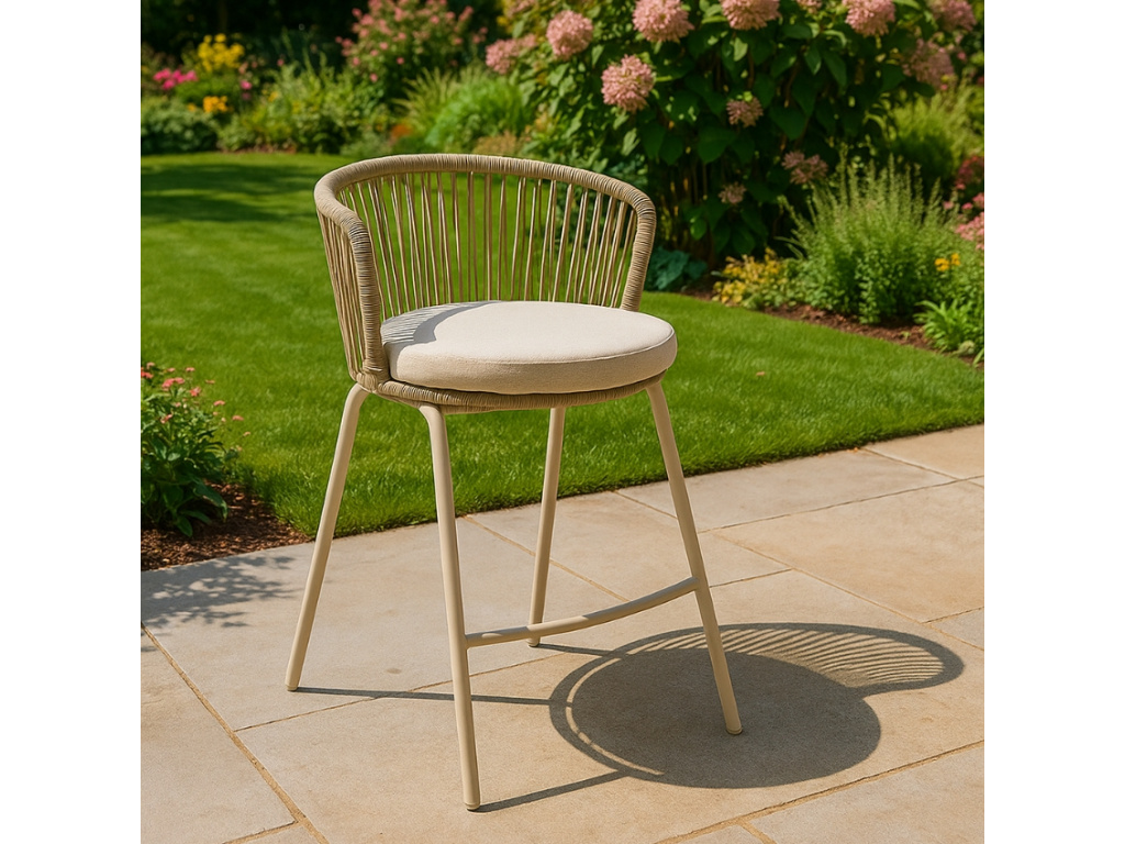 Barová židle Pierre v neutrálním béžovém odstínu vnese do každého venkovního prostoru špetku stylu i pohody. Opěrka s výpletem z odolné šňůry působí vzdušně a elegantně, zatímco její oblý tvar příjemně obejme záda. Stabilní kovová konstrukce s povrchovou úpravou pro venkovní použití doplňuje měkce čalouněný sedák ve světle šedé látce, který vybízí k dlouhému posezení pod širým nebem. Kolekce židlí Pierre je ideální volbou pro terasy, zahrady i venkovní bary, kde se design snoubí s funkčností.