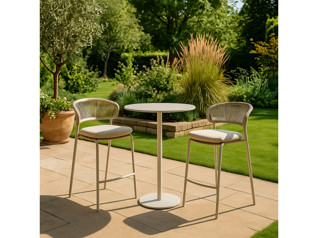 Barová židle Randall v béžovém provedení zaujme svým odlehčeným designem a precizním zpracováním. Elegantní vyplétaná opěrka zajišťuje příjemné větrání i při horkých dnech. Stabilní ocelová konstrukce s úpravou pro venkovní použití doplňuje čalouněný sedák ze světle šedé látky, ideální pro dlouhé posezení během letních večerů. Kolekce Randall přináší moderní a zároveň útulný výraz na městské terasy i do klidných zahradních zákoutí.