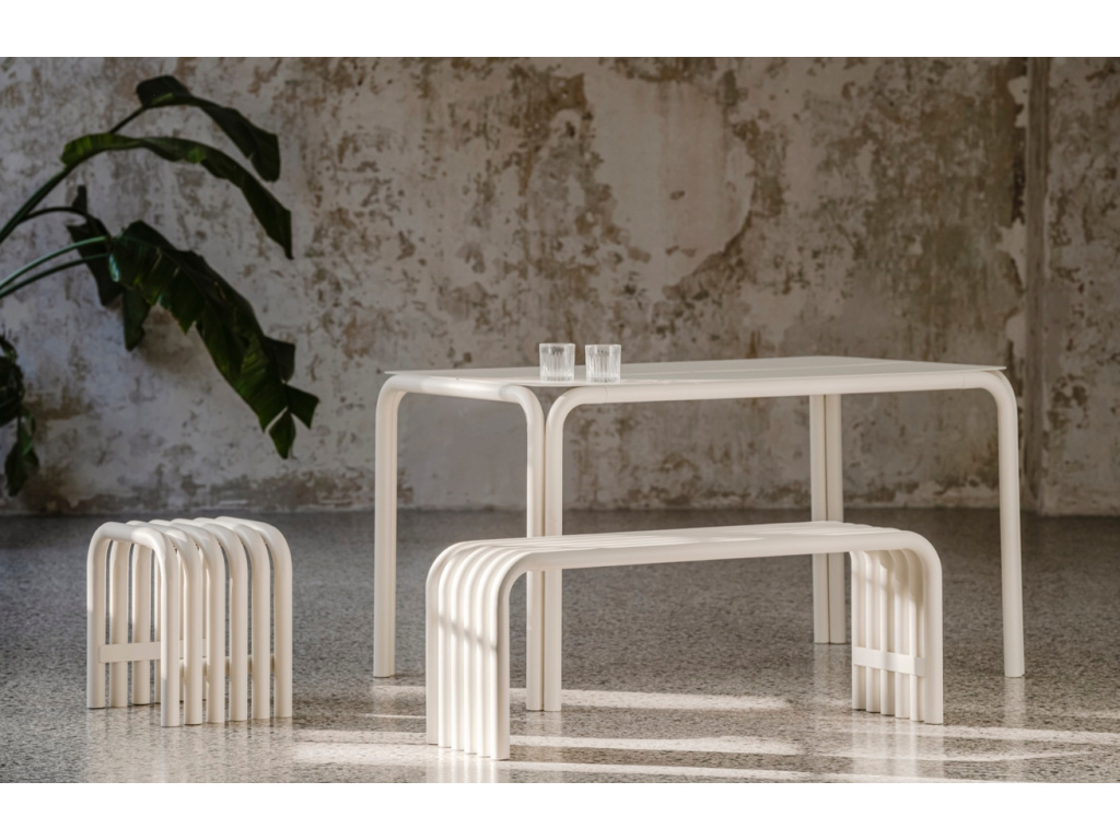 Moderní a designová lavice Nokk bude užitečným a poutavým doplňkem vašeho interiéru. Celoocelová robustní konstrukce se vyznačuje svou voděodolností a odolností vůči poškození, což vám zaručuje dlouhodobé užívání bez známek poškrábání či deformace. Přivítejte Nokk ve vašem interiéru a oživte tak váš obývací pokoj, terasu nebo lobby. Nokk pochází z dílny mladých designérů, kteří se zaměřují na minimalismus, udržitelnost a poctivost materiálů.