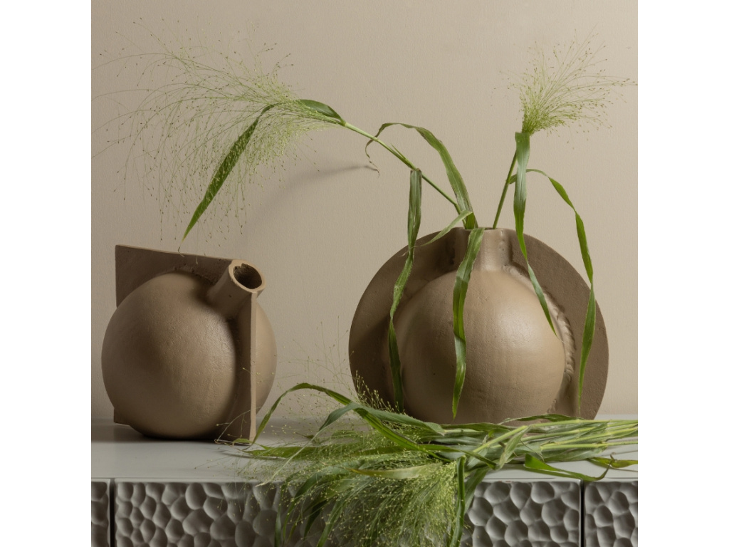 Ozdobte svůj domov dekorativní vázou Tatlin od značky Hoorns. Zaujme vás svým nadčasovým geometrickým tvarem v béžovém provedení. To zajišťuje, že zapadne téměř do každého stylu interiéru. Kombinace konvexní vázy se čtvercovým obrysem jí dodává originalitu a hravost. Vyrobena je z hliníku s povrchovou úpravou, díky čemuž má nízkou hmotnost a jednolitou barvu. Do vázy doporučujeme umísťovat suché květiny, traviny, listy či jiné suché přírodní dekorace. V naší nabídce naleznete dvě varianty z této série.