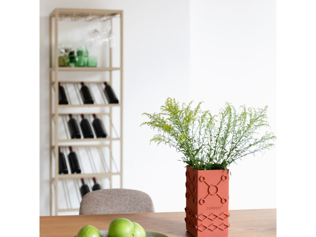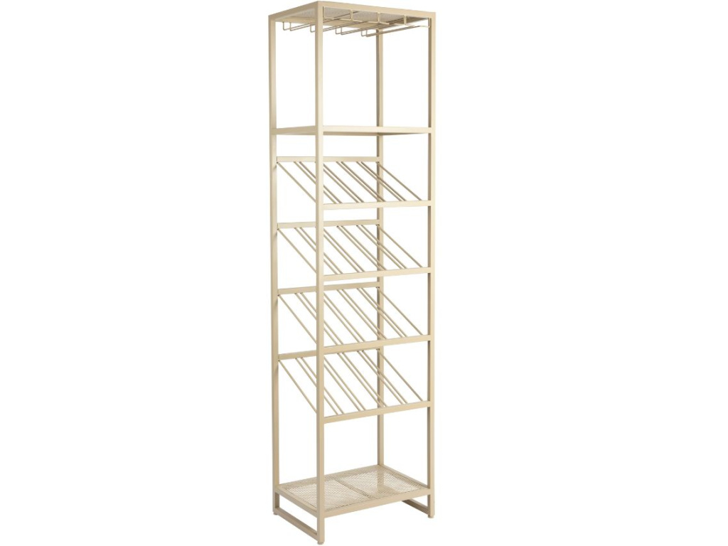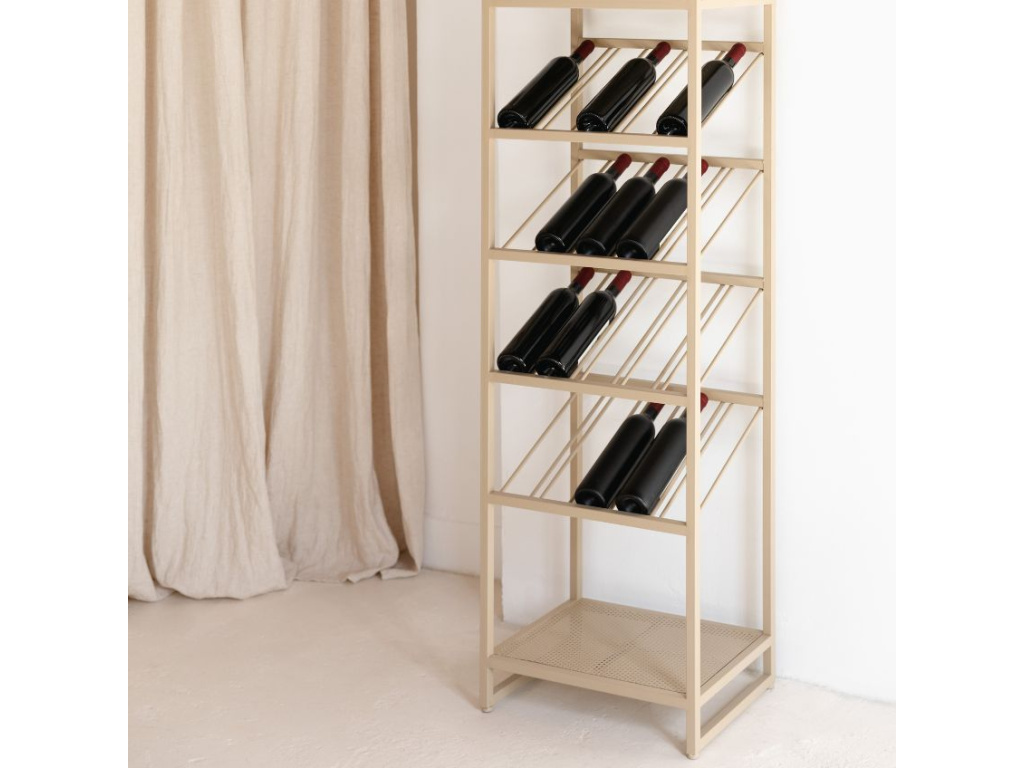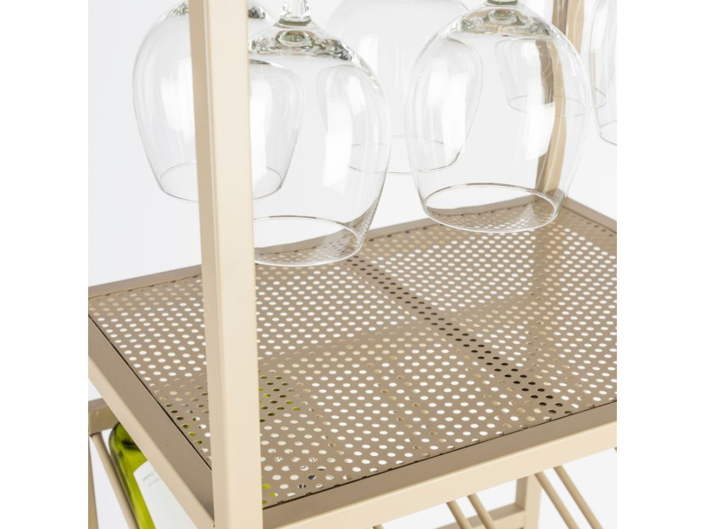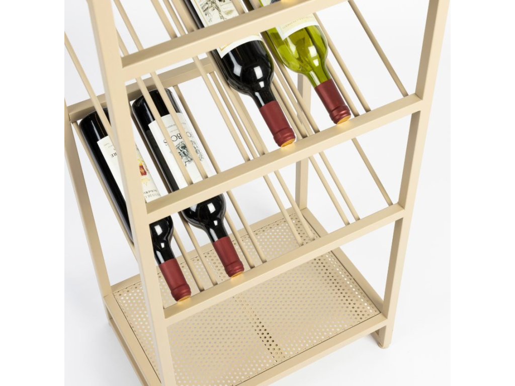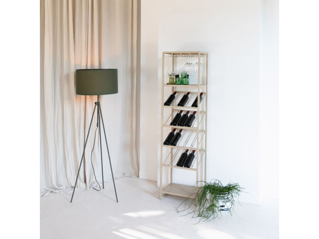 Vinotéka ZUIVER CANTOR je typická pro svůj decentní a zároveň chytrý design. Vinotéka nabízí celkem 4 police pro uskladnění vína, 2 police pro váš inventář a 4 řady pro zavěšení sklenic. Kovová konstrukce zaručuje stabilitu, neutrální béžová barva zase eleganci a univerzálnost. Díky tomu je vinotéka vhodná nejen do interiérů, ale také do restaurací, kaváren a barů.