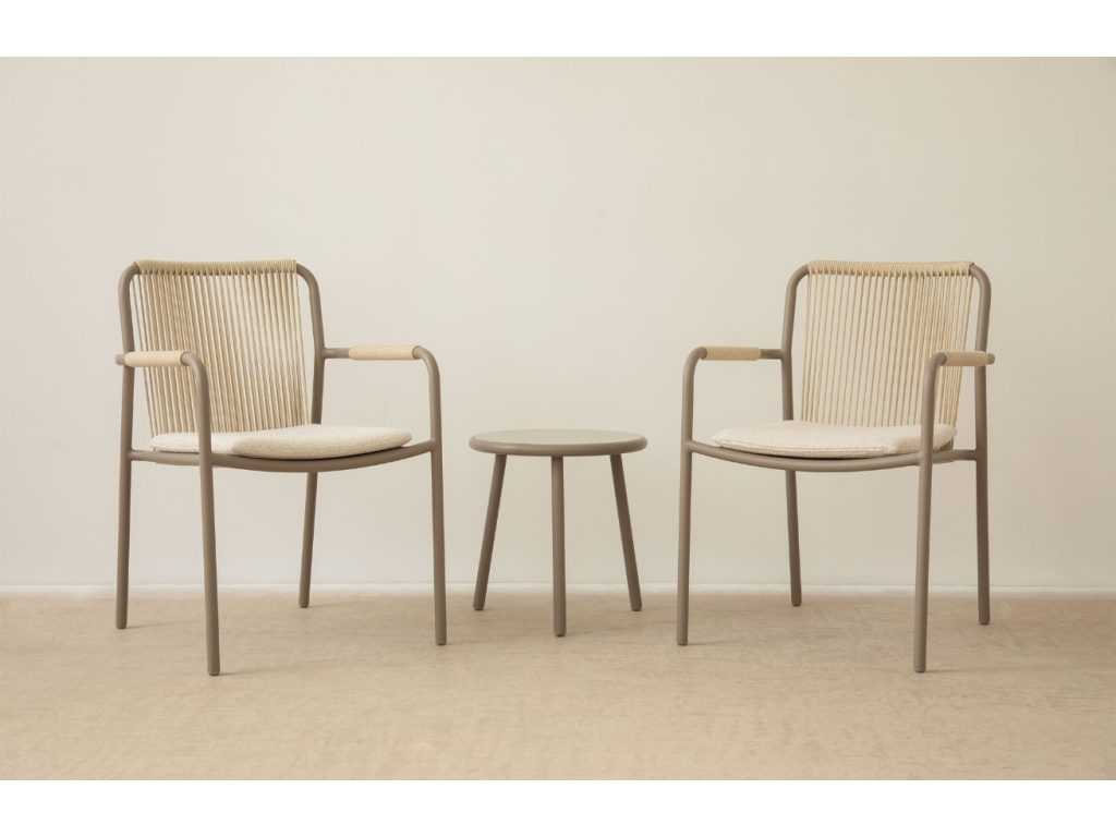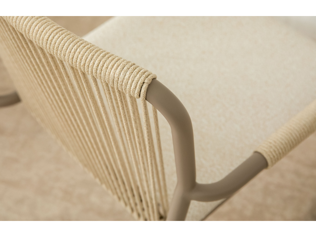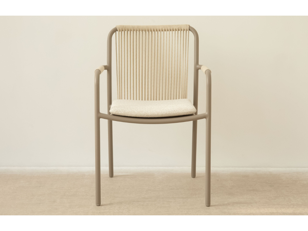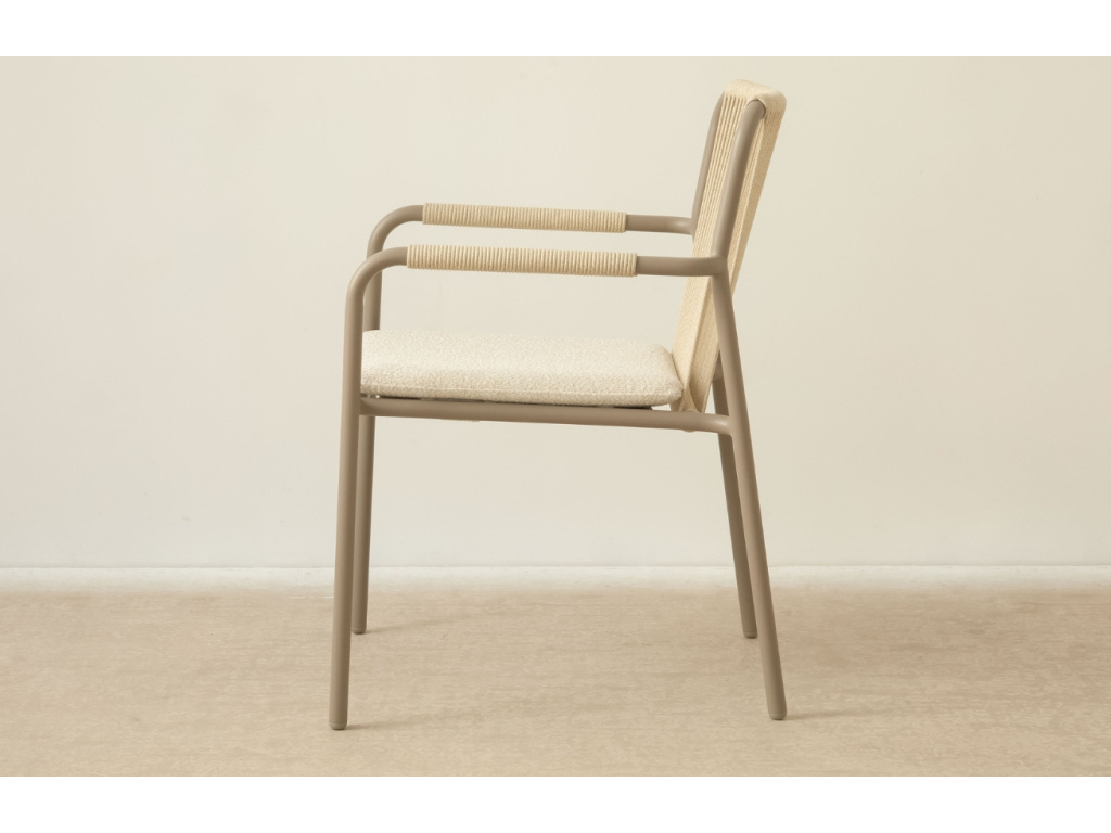 Seďte stylově, odpočívejte naplno. Zahradní židle Peralta není jen místem k sezení – je to stylový společník pro vaše venkovní chvíle. Na první pohled vás zaujme ručně tkaný výplet na opěrce i područkách, který dodává židli texturu a šmrnc. Tento jemný, ale výrazný detail ji odlišuje a činí z ní opravdu unikátní kousek, který se stane středobodem vašeho venkovního prostoru. Konstrukce z hliníku je lehká, ale zároveň pevná – zajišťuje stabilitu a dlouhou životnost, a přitom nechává židli působit vzdušně a elegantně. Měkký odnímatelný sedák je navržený pro maximální komfort, ať už jde o dlouhou večeři s přáteli nebo odpolední kávu na slunci. Nadčasová, pohodlná a s jemným nádechem ruční práce – zkrátka židle, která vás bude bavit každý den.