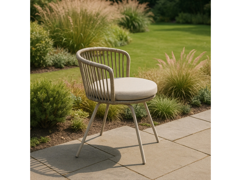 Zahradní židle Vilma v elegantním béžovém odstínu propojuje eleganci s maximálním komfortem pro chvíle odpočinku pod širým nebem. Měkký polstrovaný sedák ze světle šedé látky a opěrka s výpletem z odolné šňůry tvoří jemně zaoblený tvar, který přímo vybízí k usednutí. Ocelová konstrukce s povrchovou úpravou pro venkovní použití zajišťuje perfektní stabilitu i dlouhou životnost. Vilma skvěle zapadne do moderních, boho i rustikálních exteriérů – ať už na terase, balkoně nebo v zahradě.