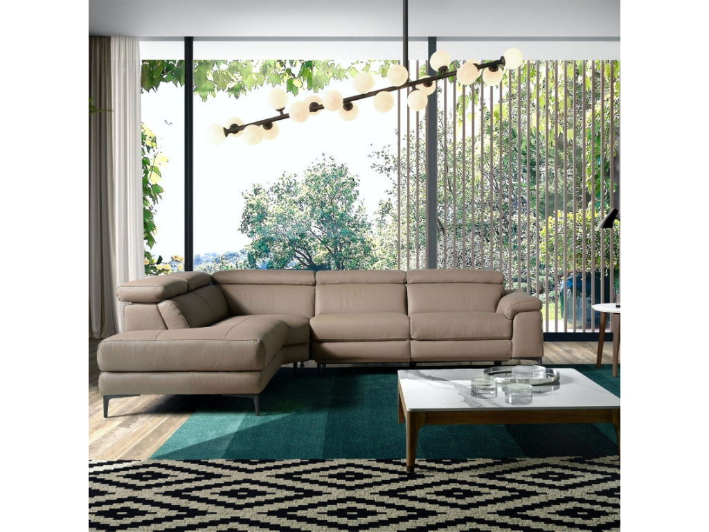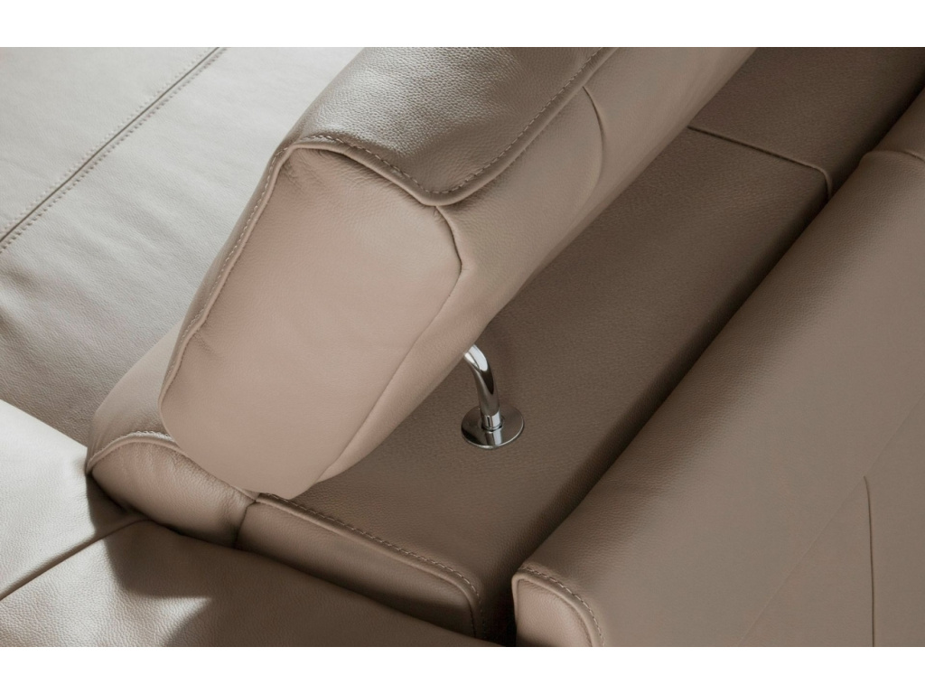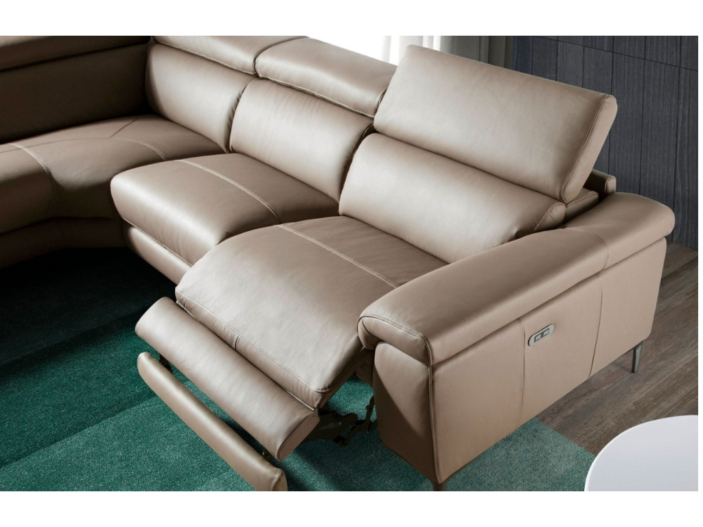 Tato rohová pohovka v sobě spojuje moderní eleganci a prvotřídní komfort. Čalounění z hovězí kůže v jemném tónu krásně zapadne do interiérů inspirovaných minimalistickým nebo glamour stylem. Rohová lenoška nabízí dostatek prostoru pro relaxaci i společné chvíle s rodinou. Elektrický relaxační systém umožní snadné nastavení ideální polohy pro maximální pohodlí. Kovová podnož v tmavém provedení dodává celé pohovce vizuální lehkost a stylový kontrast k jemné barvě čalounění.